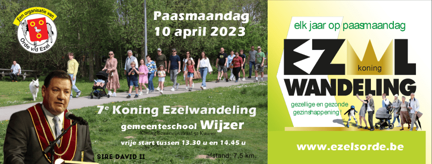 Graag nodigen we u dan ook uit naar de  Koning Ezelwandeling op paasmaandag 10 april 2023.