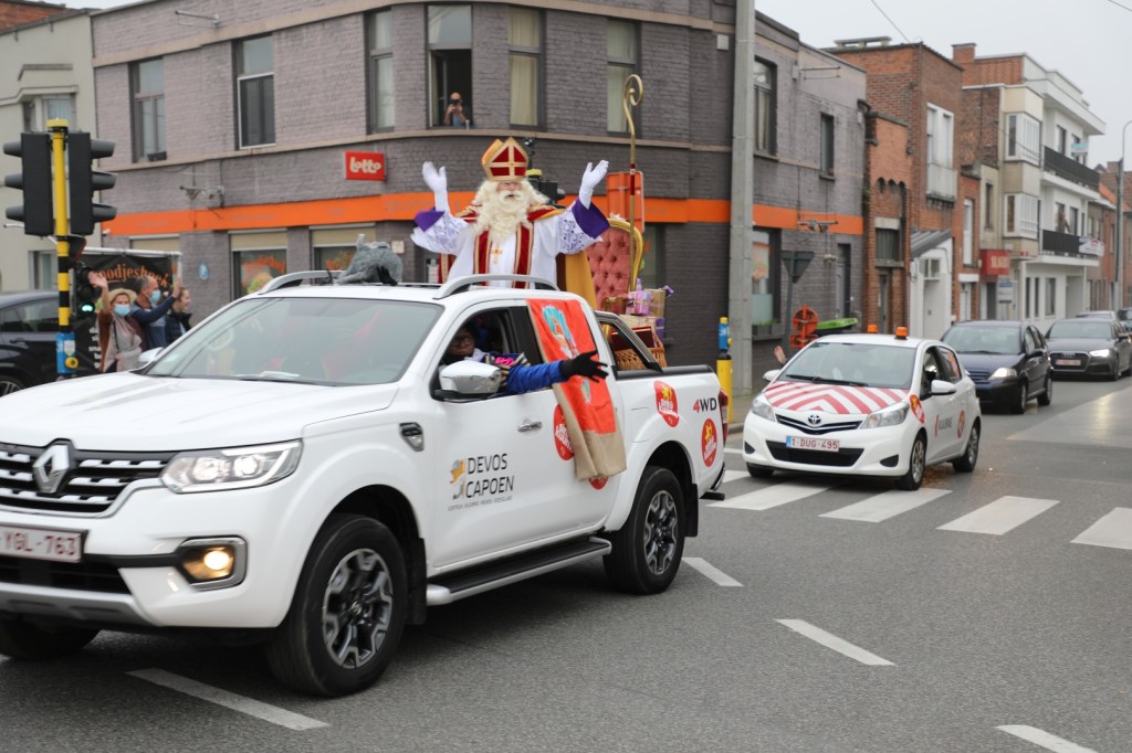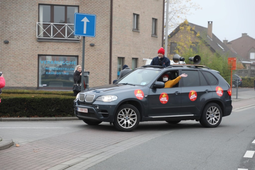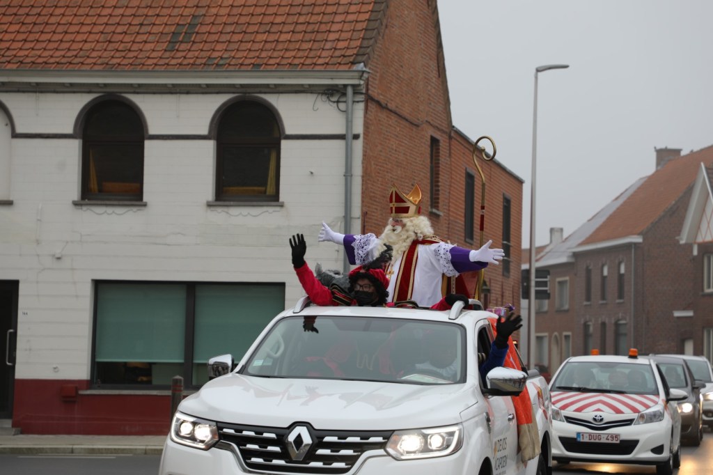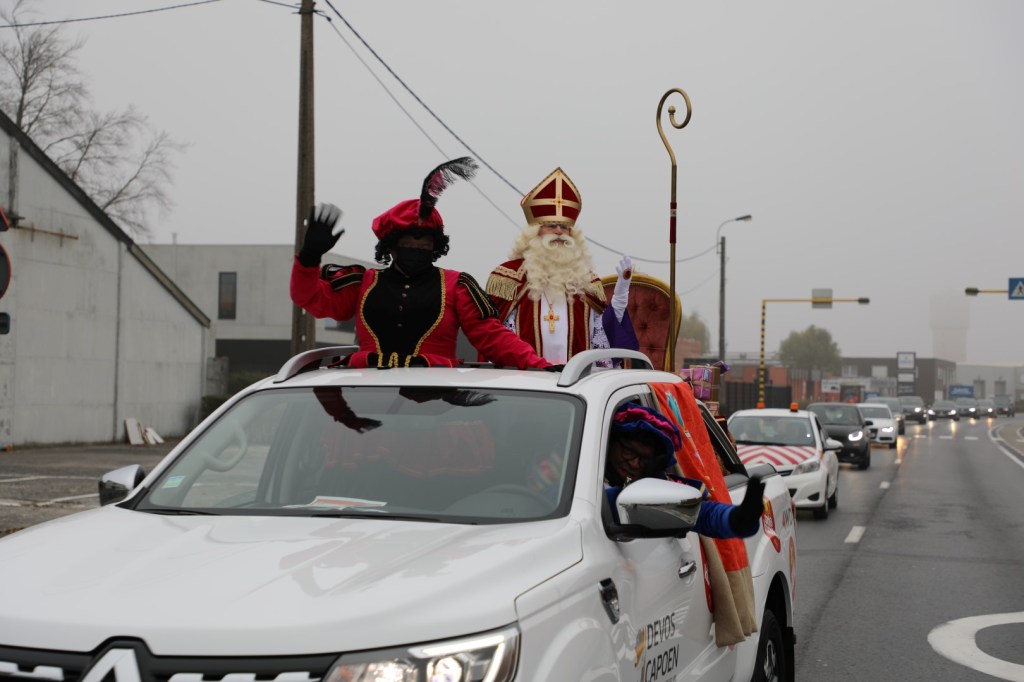 Sinterklaas liet zich rondrijden op een open wagen door Kuurne. 21 km stonden overal kinderen, ouders, grootouders en zwaaien dat ze deden naar de Sint die levensecht was en niet van op de TV. En er waren geen stoute kinderen in Kuurne. Wel heel veel blije gezichten.