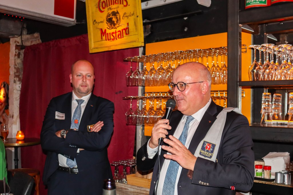 Confraters Mieke Derez, Tine Neyrinck en Wim Vanwynsberghe kwamen met het idee op de proppen om iets te organiseren voor de confraters. Dit resulteerde in het eerste confrater-netwerkevent dat doorging in Sfeercafé De Wolf te Lichtervelde. Aangezien dat Carl Vereecke grootmeester werd van de Orde van de Ezel in opvolging van Eddy Lafaut, werd de President-Epitoga doorgegeven aan de nieuwe president van de Confrérie Alexander Gaillez. Maar in zijn maidenspeech hield hij het zelf bij “Dienaar”. Met enkele hapjes en drankjes kon in dit sfeervol café de banden tussen confraters aangehaald worden in een losse sfeer.
