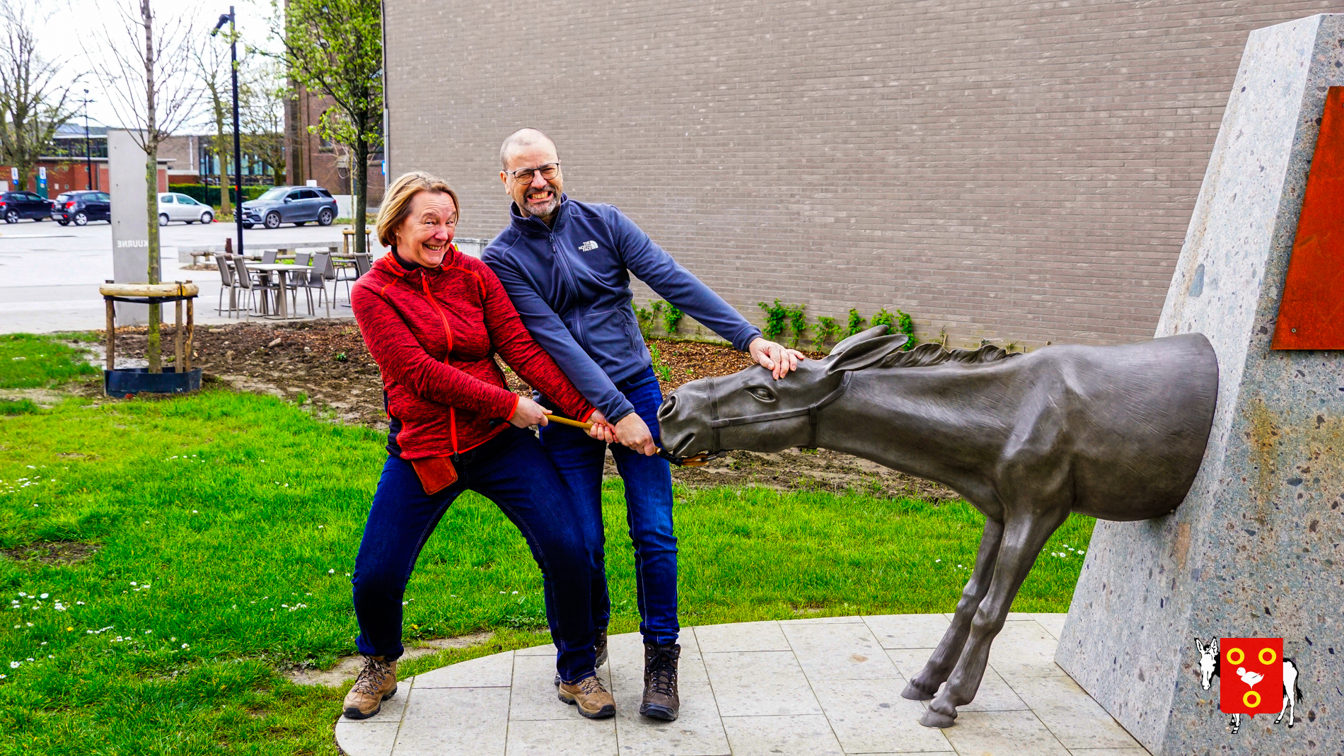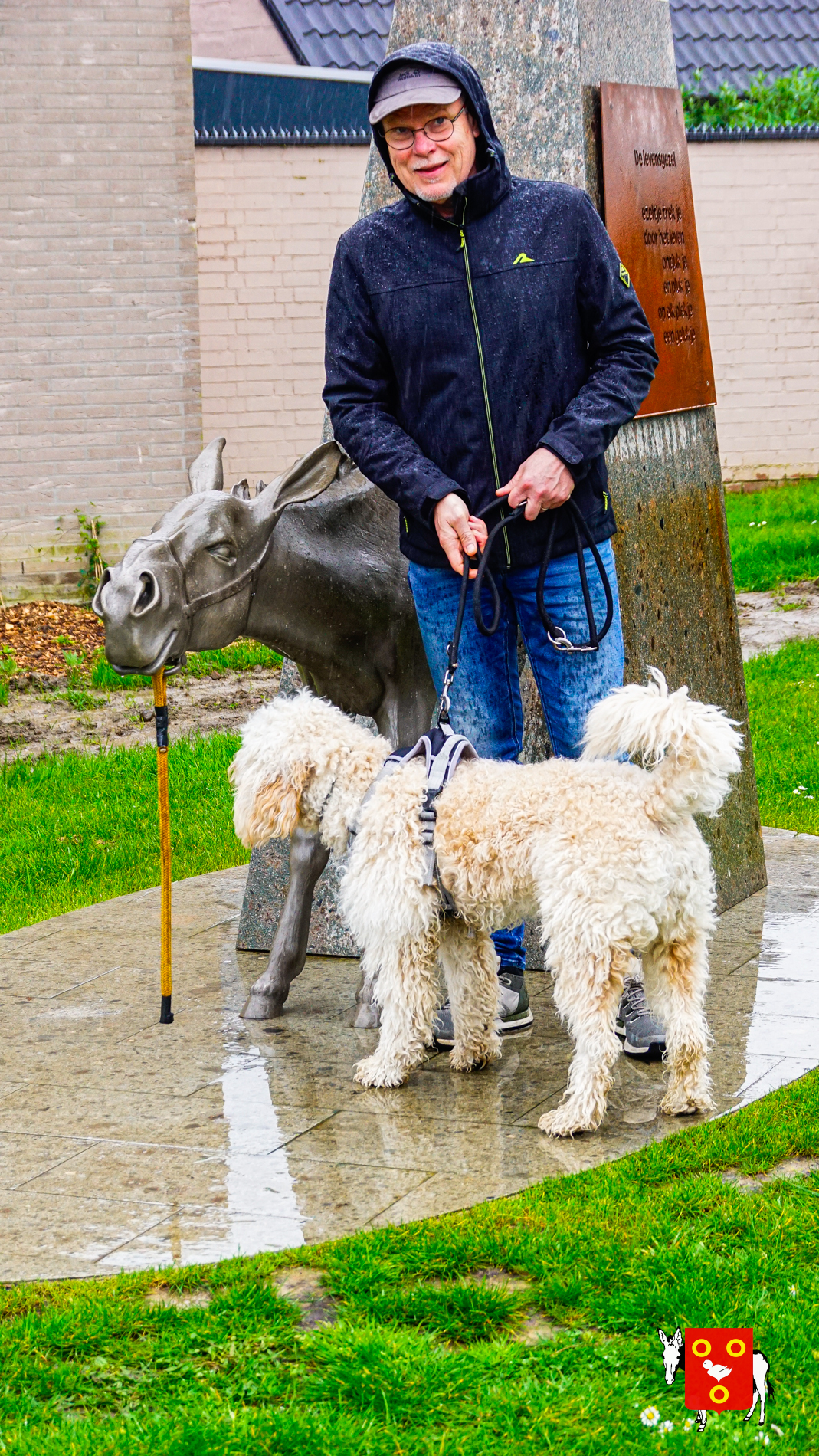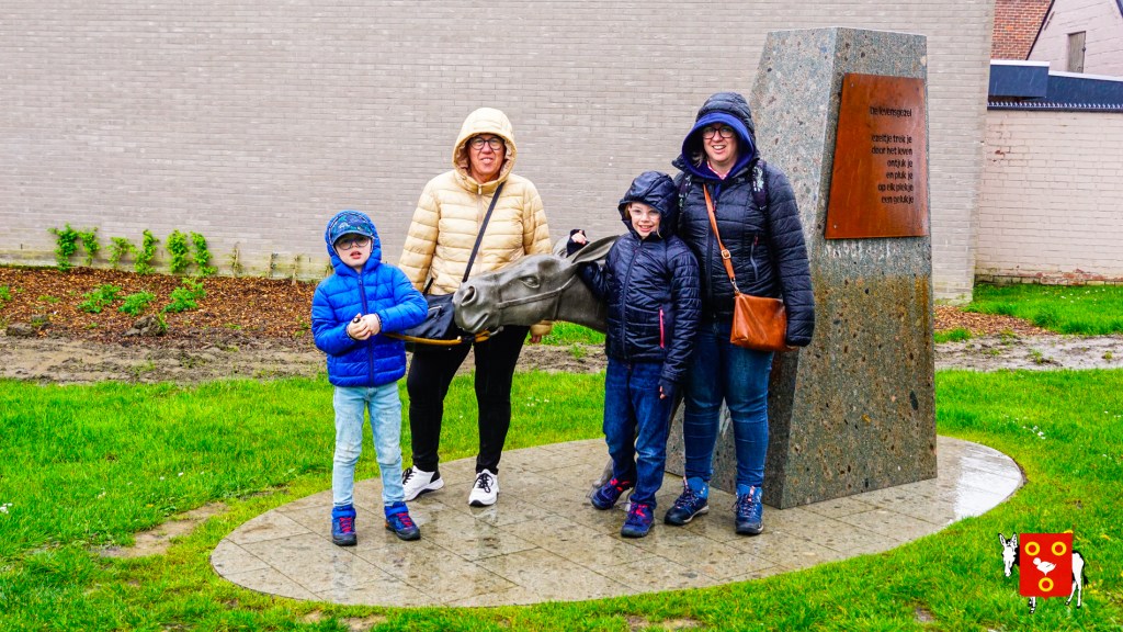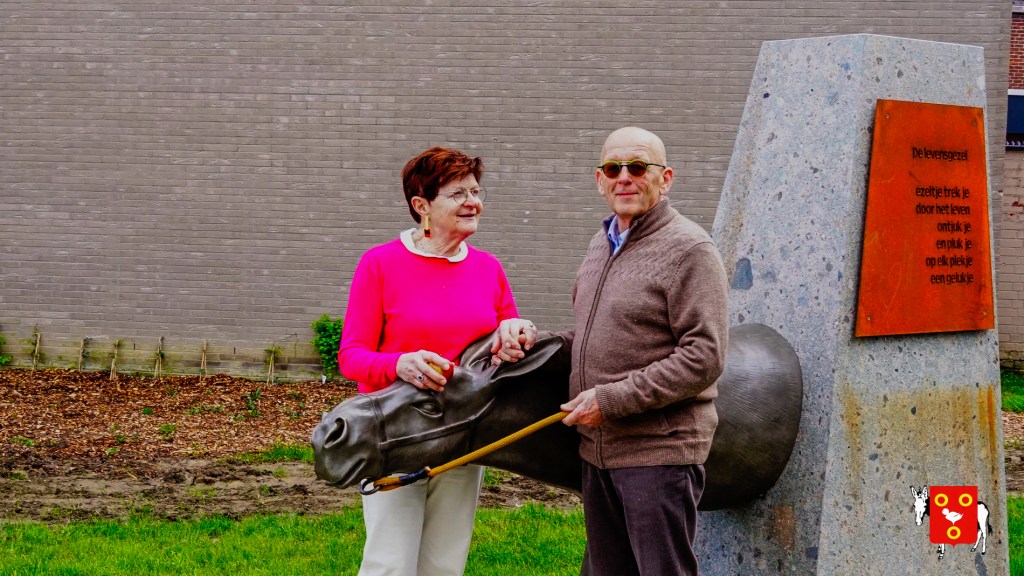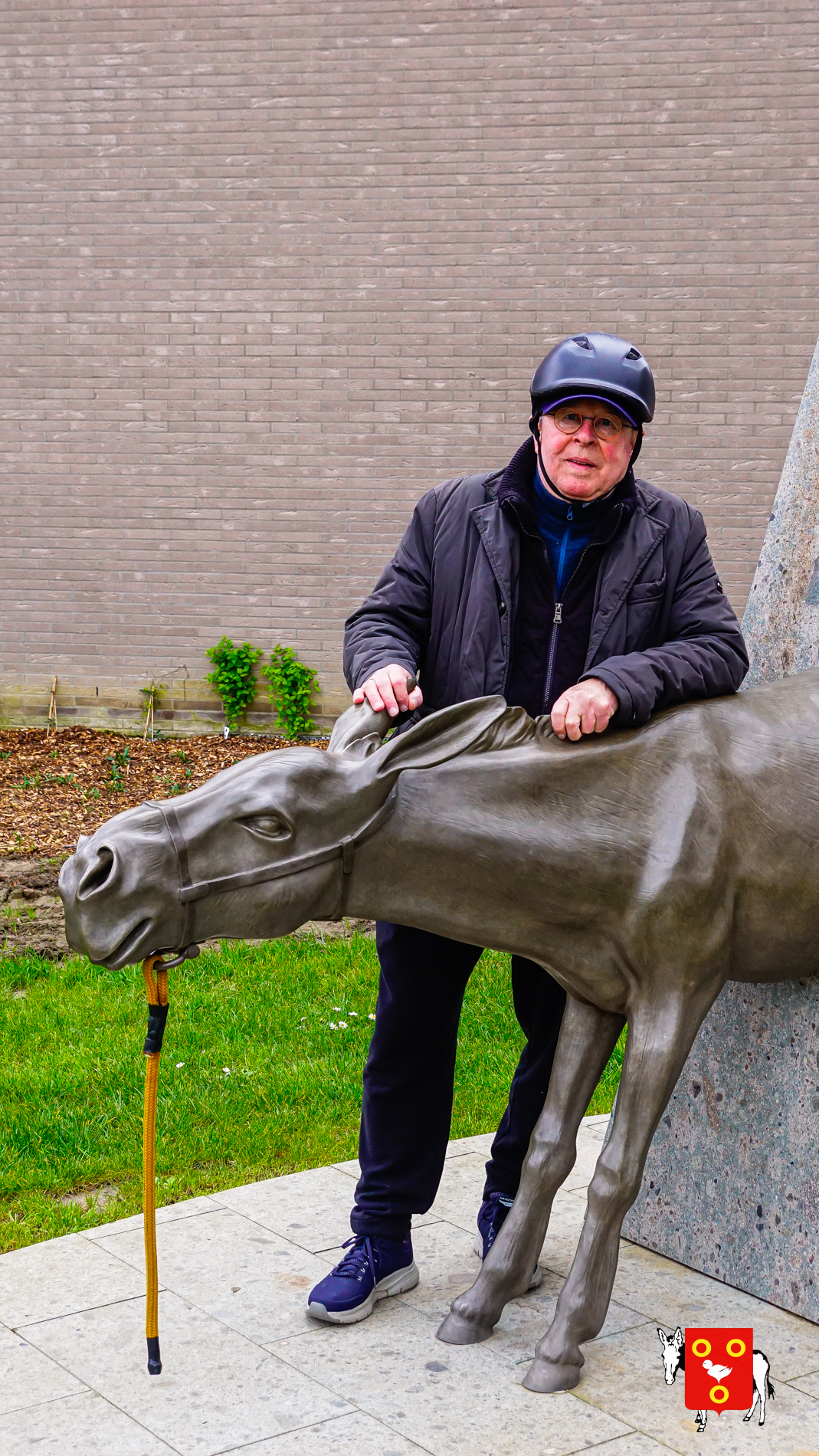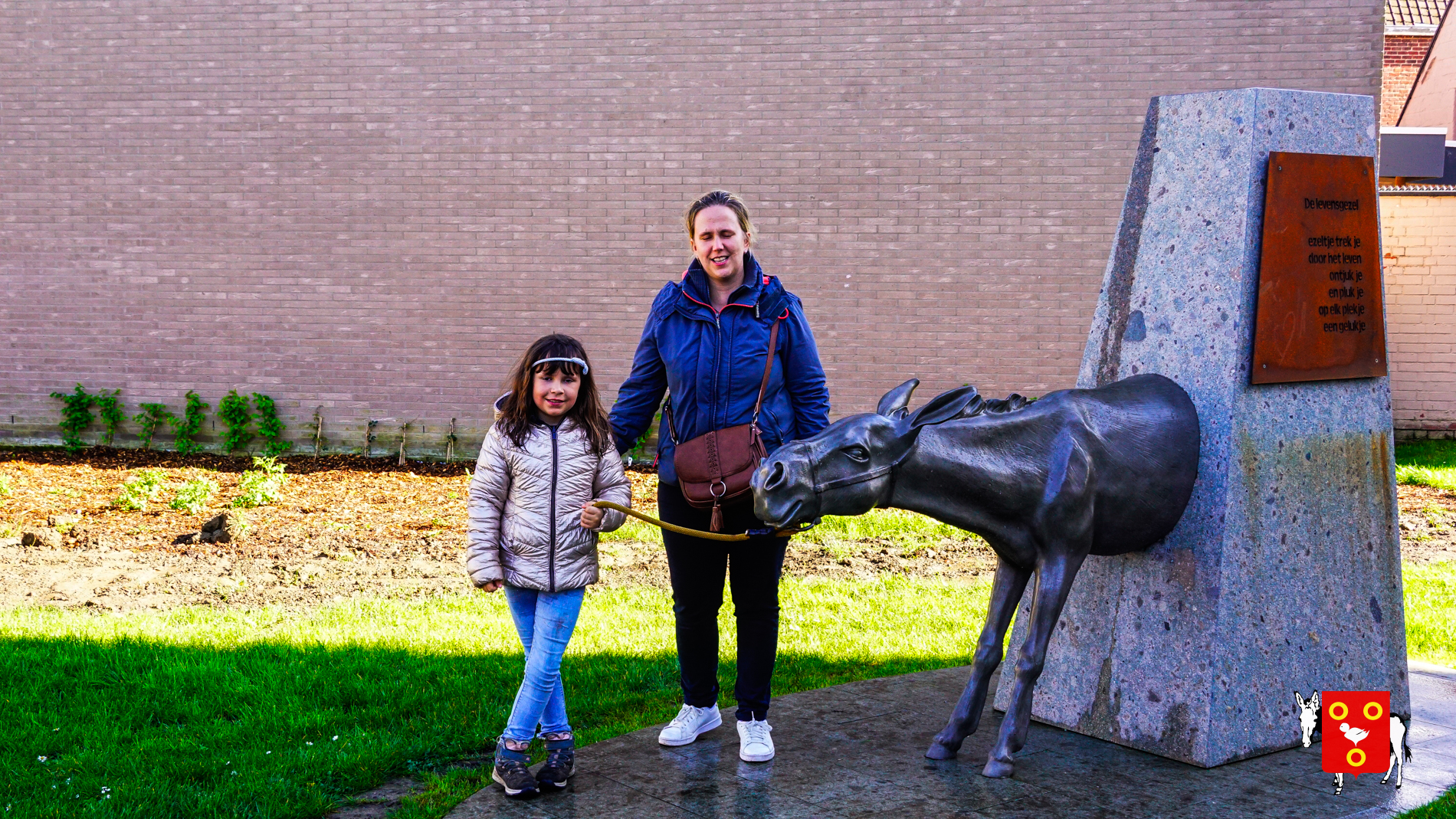 Tijdens de 8e Koning Ezelwandeling passeerden we ook het ezelsbeeld ‘De koppige Ezel’ dat ter gelegenheid van 900 Jaar Kuurne geschonken werd door het gemeentebestuur van Kuurne en de Orde van de Ezel aan de Kuurnse bevolking omdat we trots zin op onze spotnaam – De Ezels van Kuurne. Fotograaf Willy Debacker doorstond de regen en we zien hier een selectie van de wandelaars die even wouden poseren voor het beeld van Philip Moerman en het gedicht van Katrien Bonte.