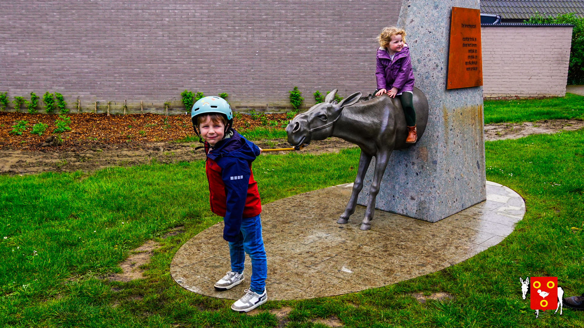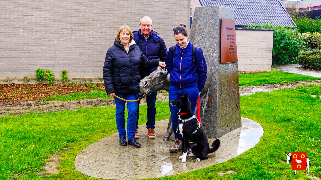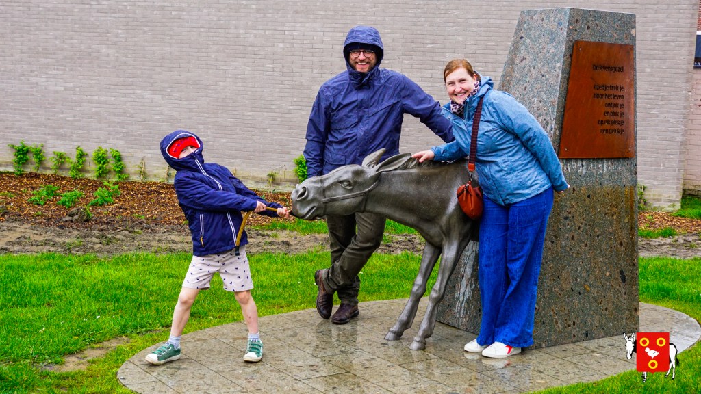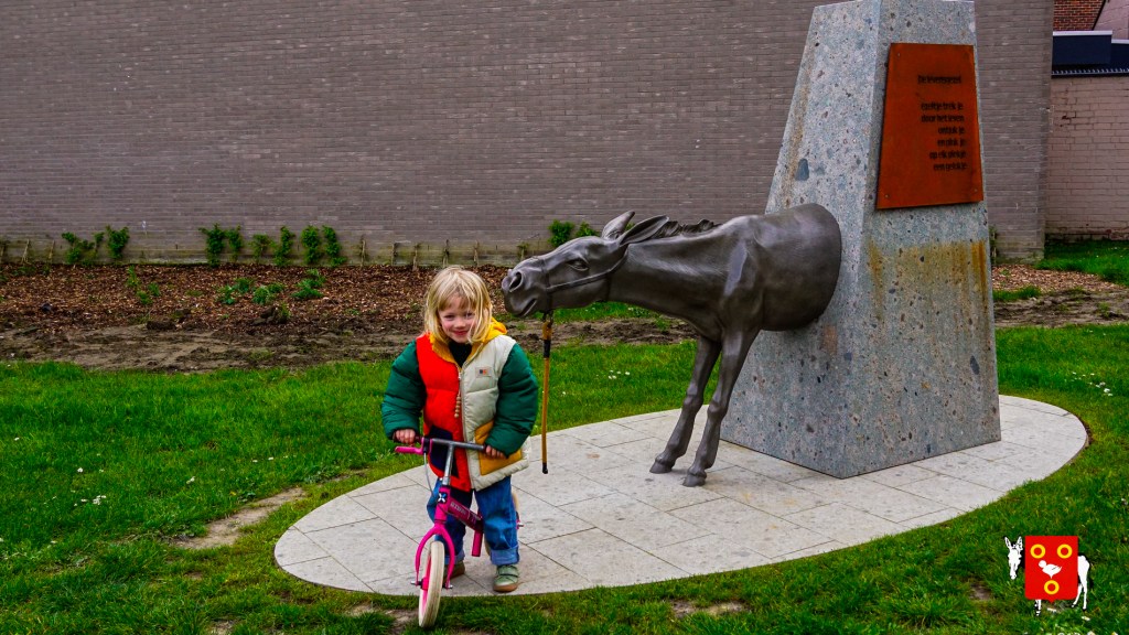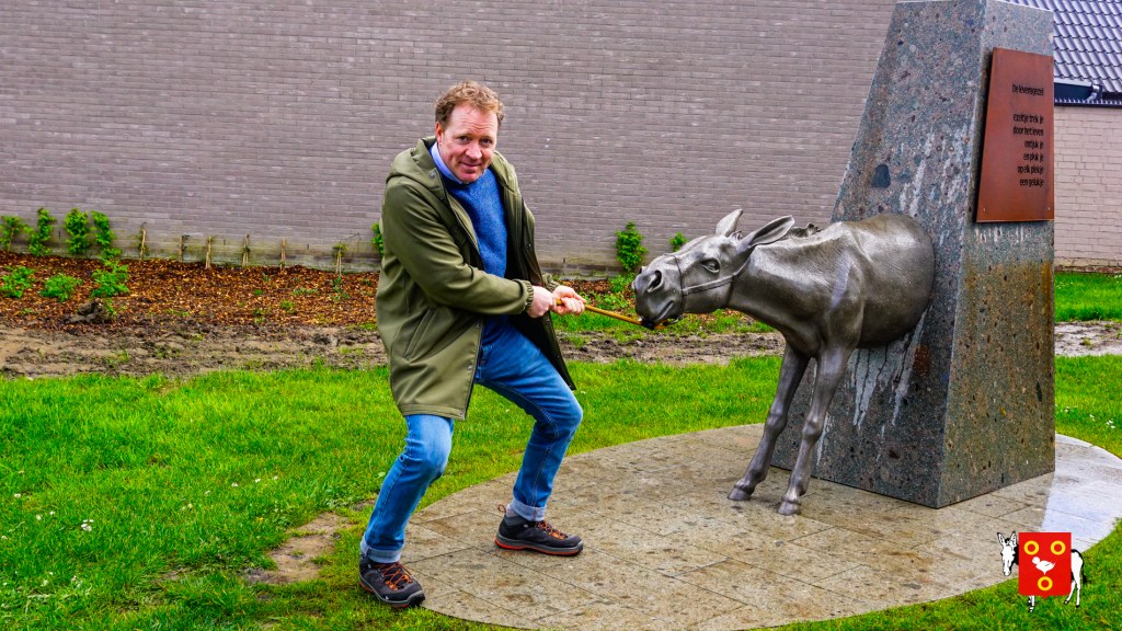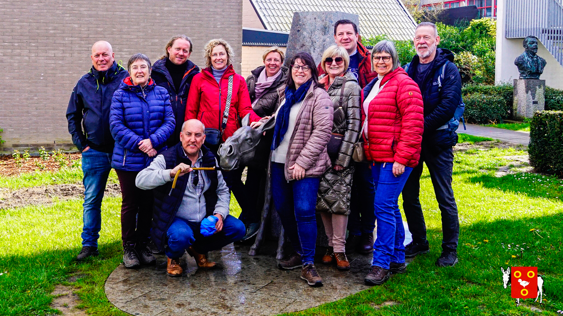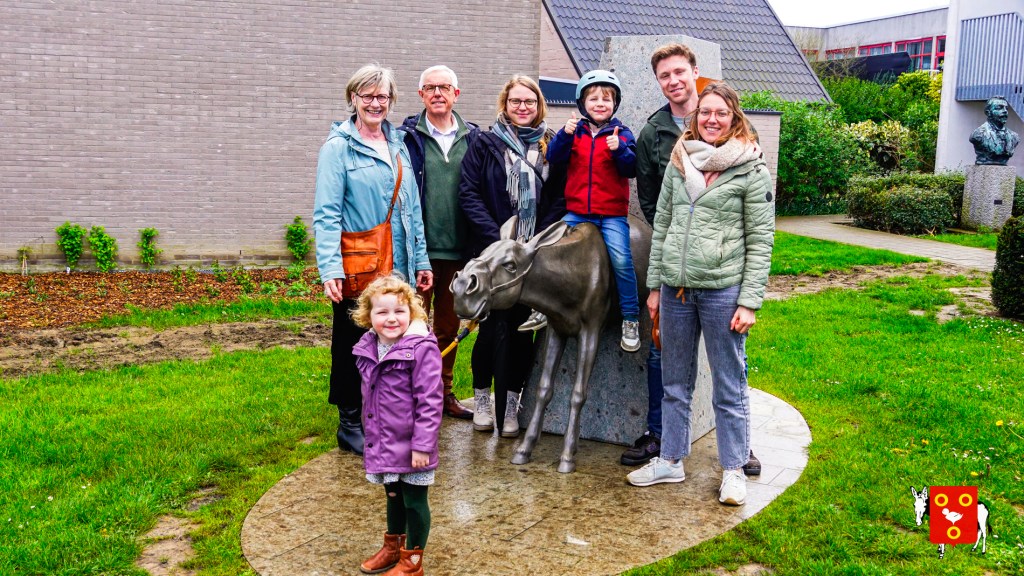 Tijdens de 8e Koning Ezelwandeling passeerden we ook het ezelsbeeld ‘De koppige Ezel’ dat ter gelegenheid van 900 Jaar Kuurne geschonken werd door het gemeentebestuur van Kuurne en de Orde van de Ezel aan de Kuurnse bevolking omdat we trots zin op onze spotnaam – De Ezels van Kuurne. Fotograaf Willy Debacker doorstond de regen en we zien hier een selectie van de wandelaars die even wouden poseren voor het beeld van Philip Moerman en het gedicht van Katrien Bonte.