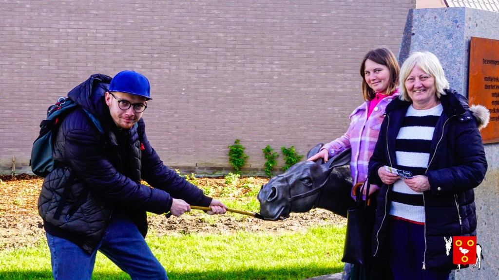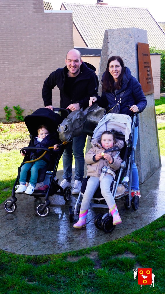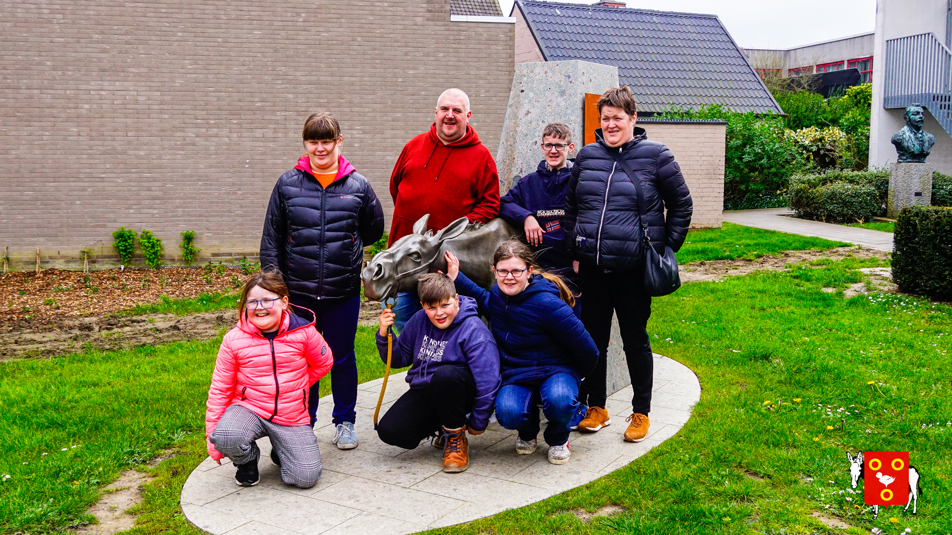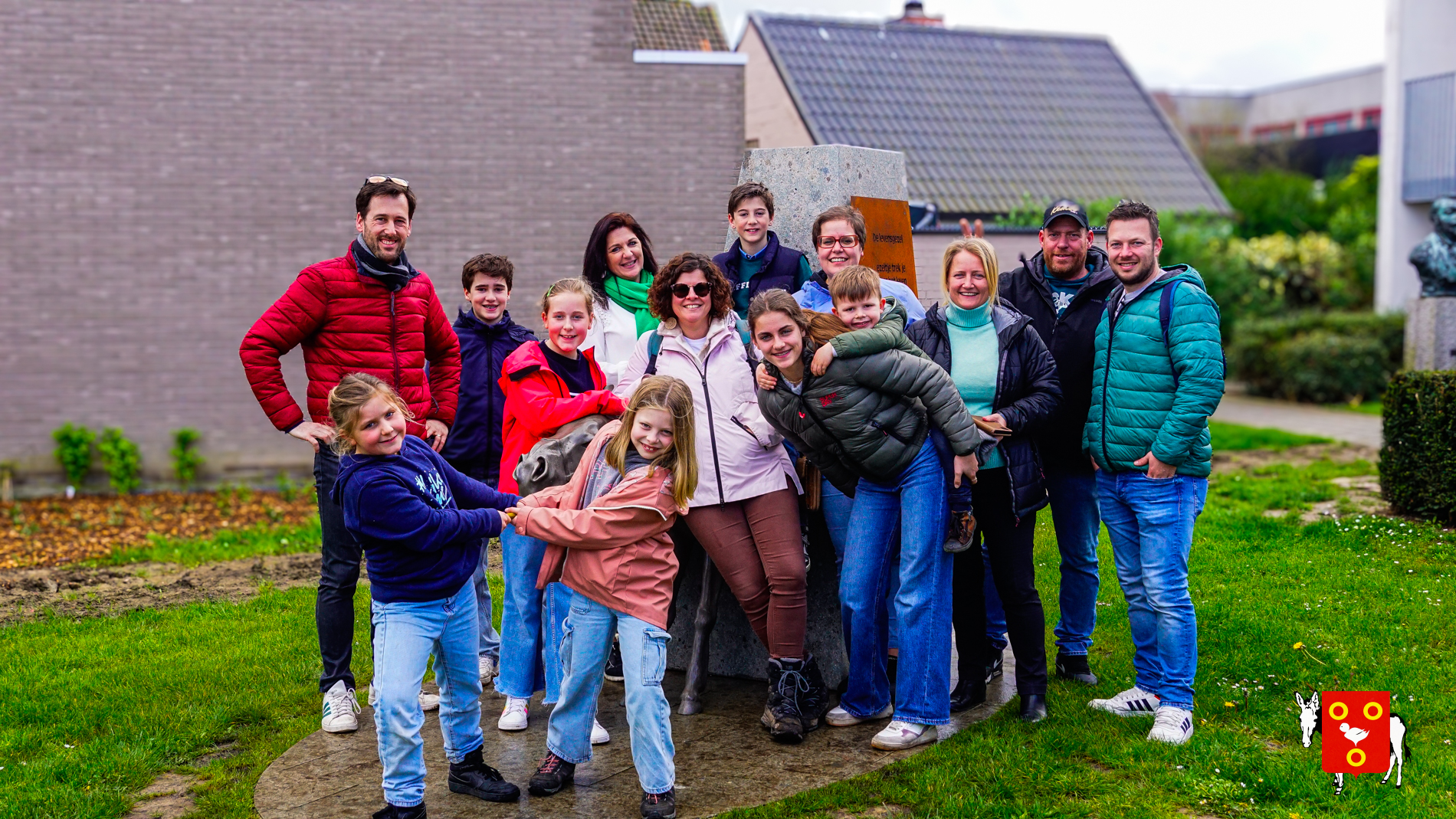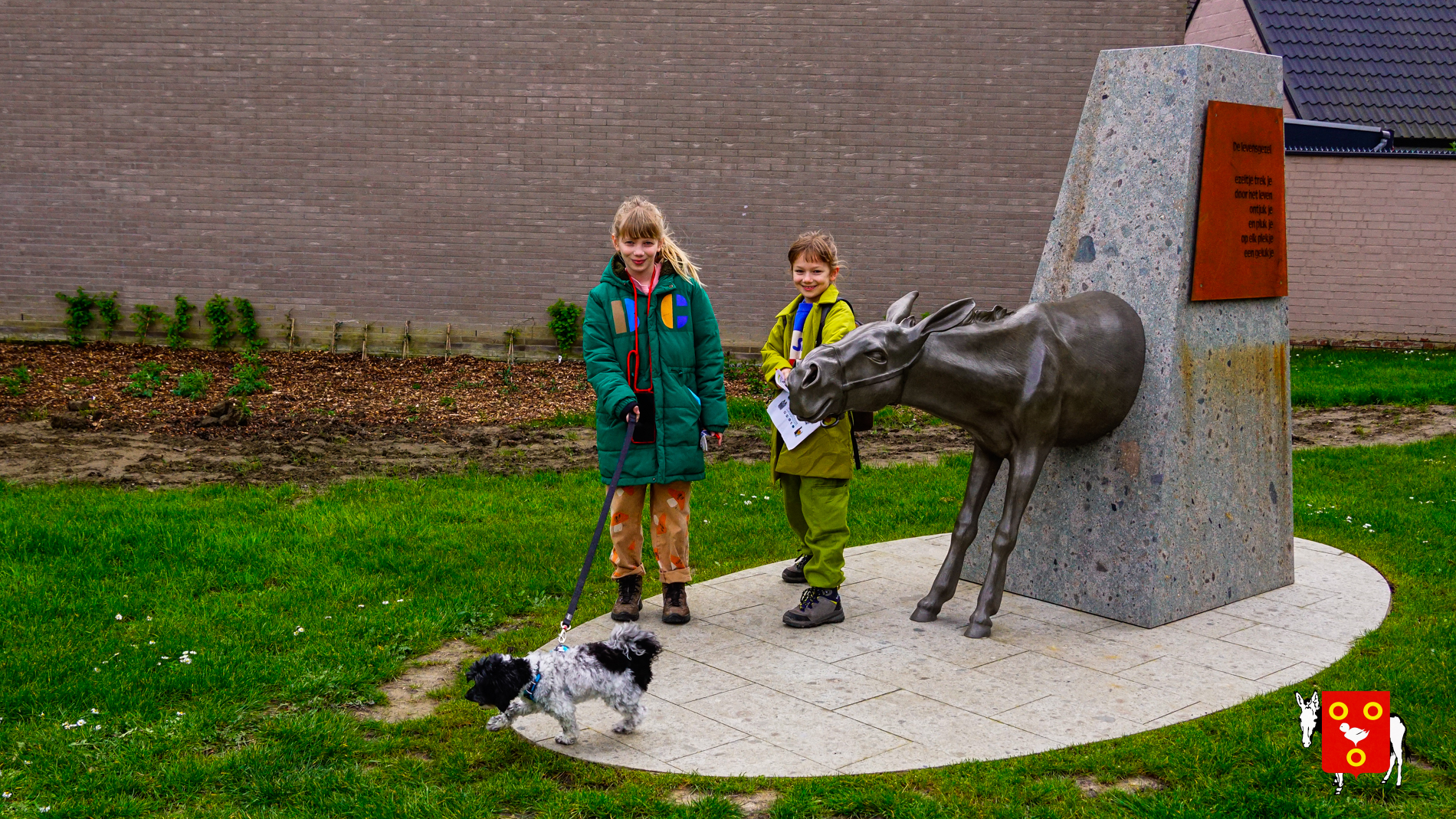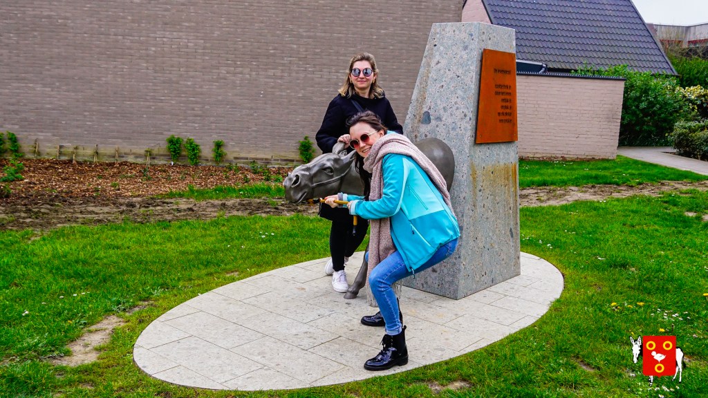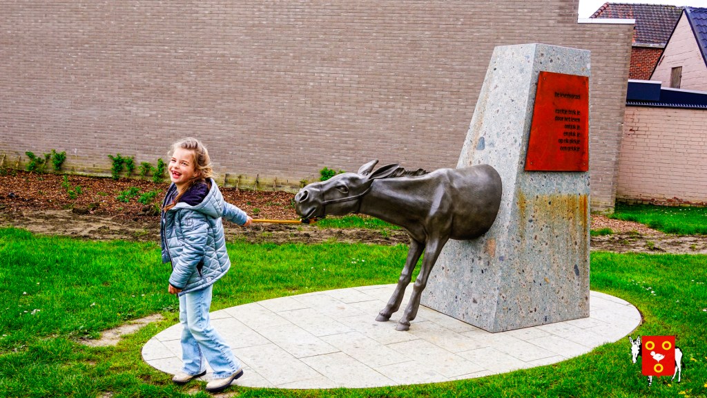 Tijdens de 8e Koning Ezelwandeling passeerden we ook het ezelsbeeld ‘De koppige Ezel’ dat ter gelegenheid van 900 Jaar Kuurne geschonken werd door het gemeentebestuur van Kuurne en de Orde van de Ezel aan de Kuurnse bevolking omdat we trots zin op onze spotnaam – De Ezels van Kuurne. Fotograaf Willy Debacker doorstond de regen en we zien hier een selectie van de wandelaars die even wouden poseren voor het beeld van Philip Moerman en het gedicht van Katrien Bonte.