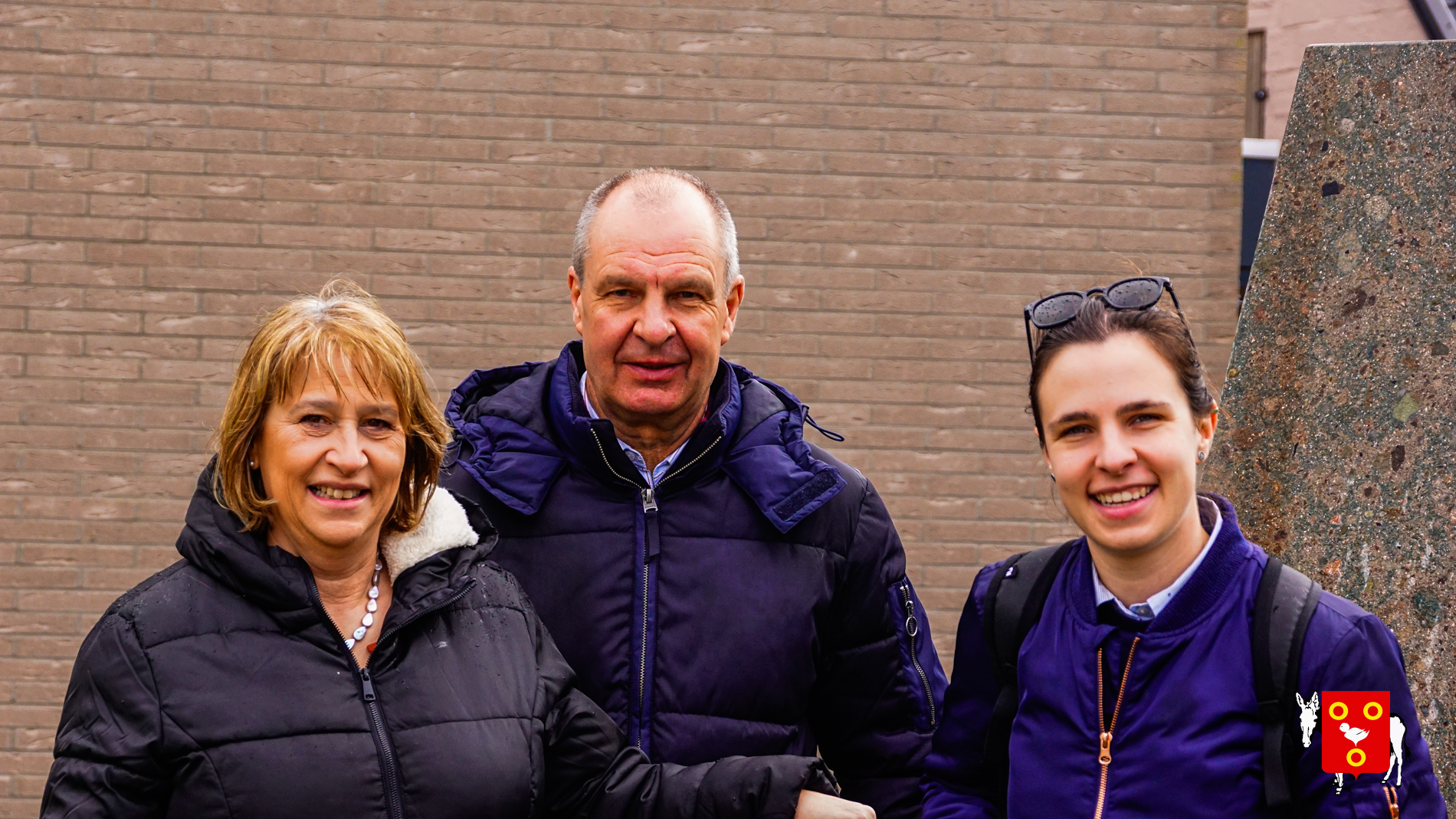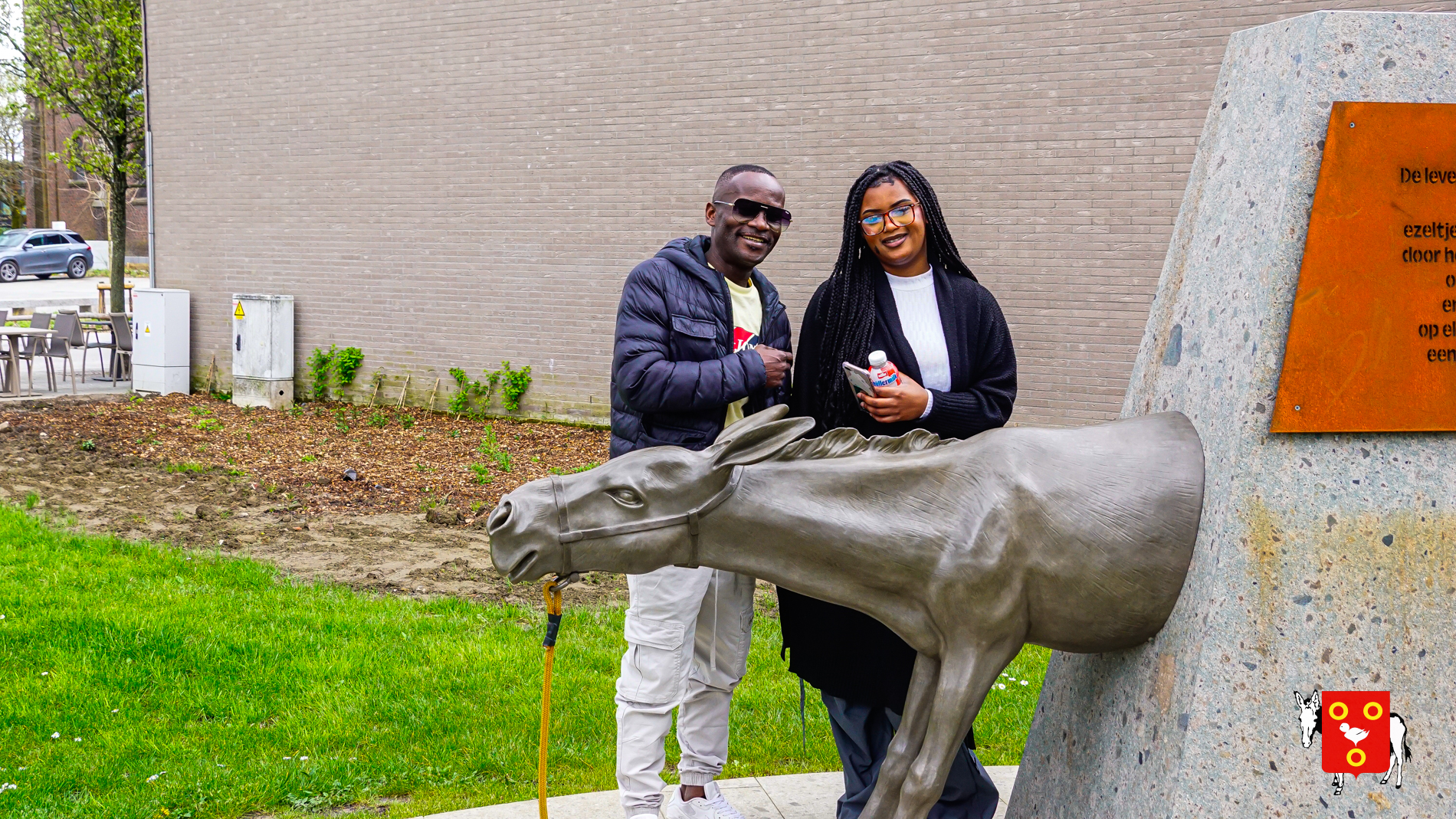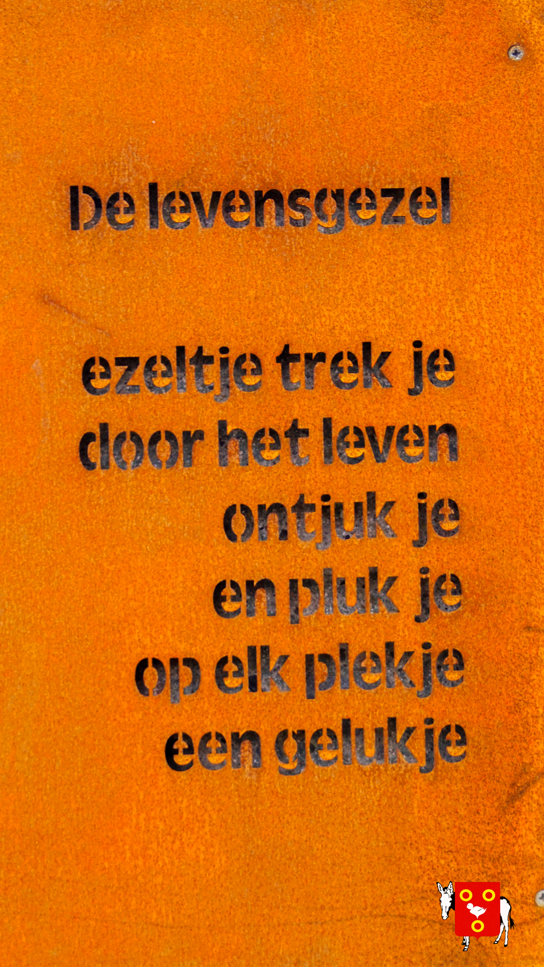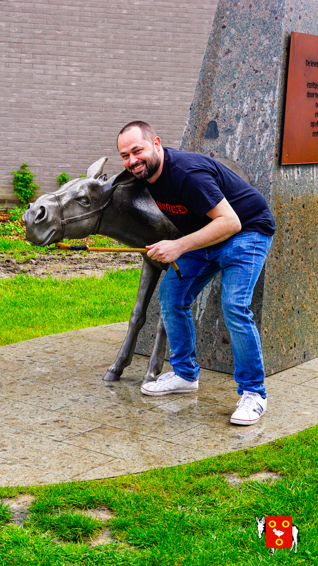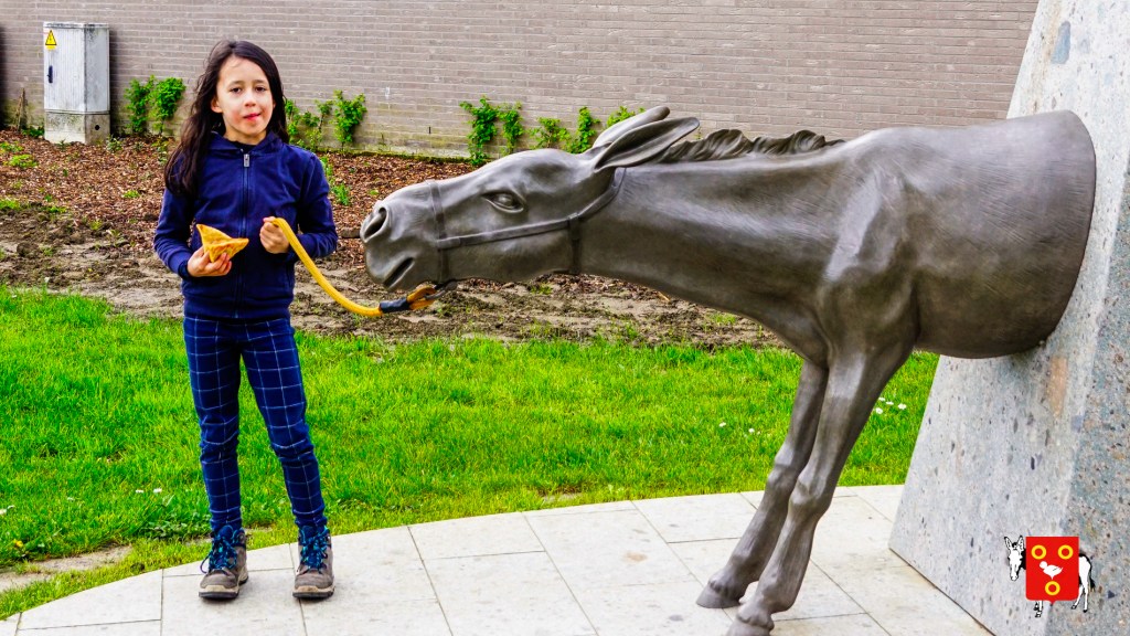 Tijdens de 8e Koning Ezelwandeling passeerden we ook het ezelsbeeld ‘De koppige Ezel’ dat ter gelegenheid van 900 Jaar Kuurne geschonken werd door het gemeentebestuur van Kuurne en de Orde van de Ezel aan de Kuurnse bevolking omdat we trots zin op onze spotnaam – De Ezels van Kuurne. Fotograaf Willy Debacker doorstond de regen en we zien hier een selectie van de wandelaars die even wouden poseren voor het beeld van Philip Moerman en het gedicht van Katrien Bonte.
