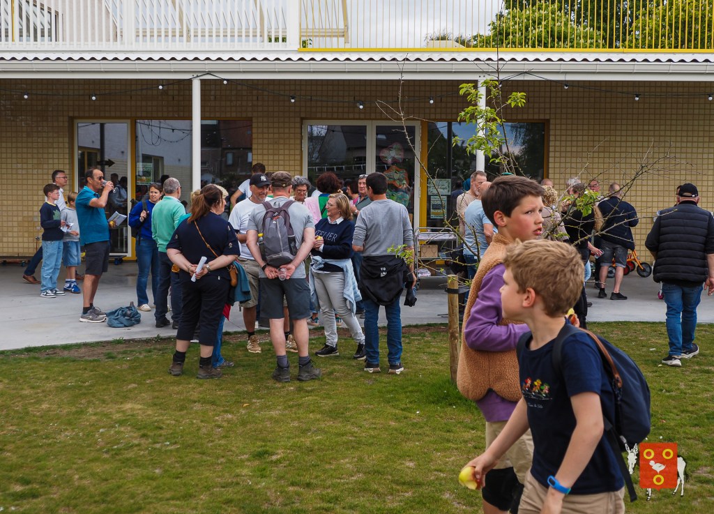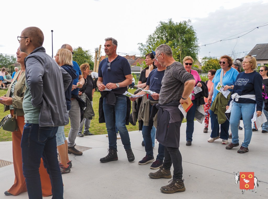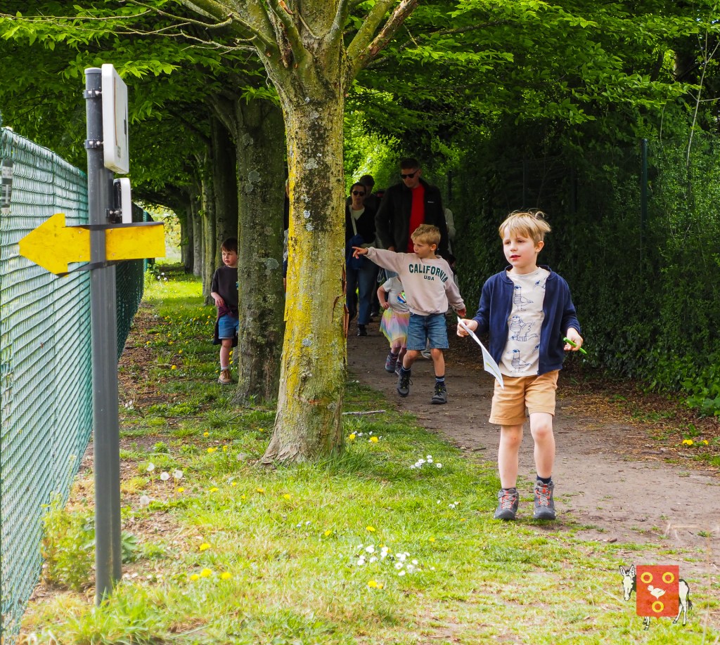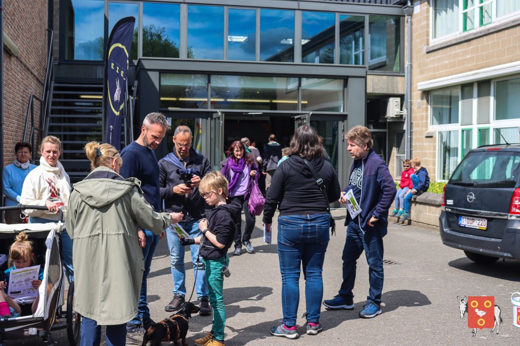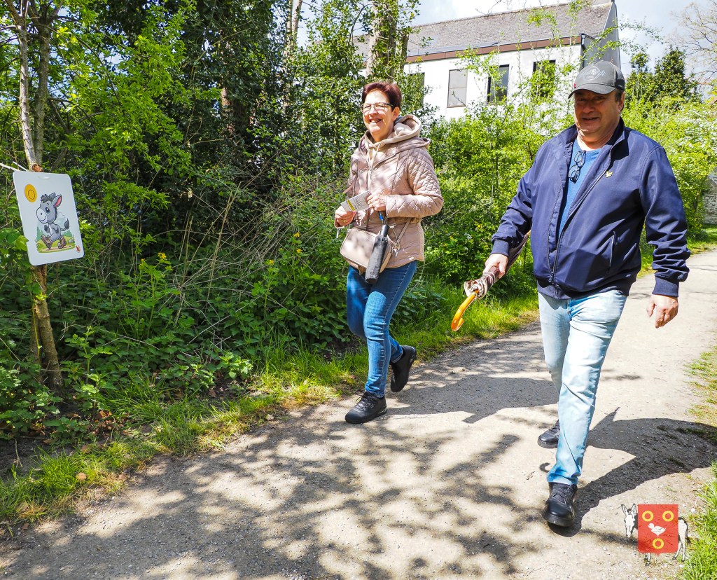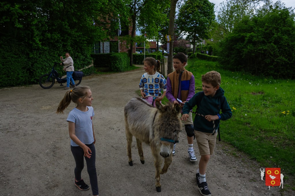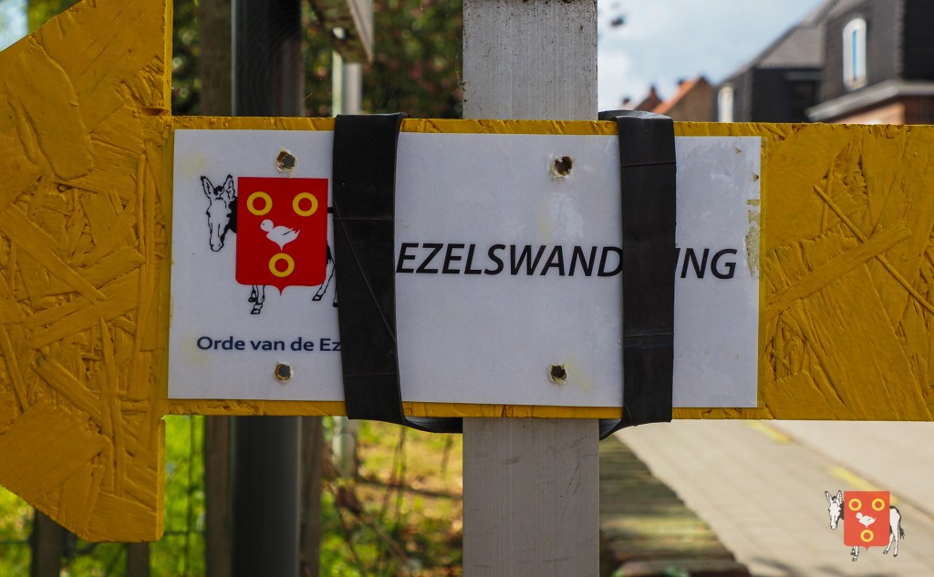Een overzicht van amuserende en wandelende families met kinderen, honden , vrienden, genieten van een ezeltje, ezelsoor, appel en de 50 bordjes zonder nut. De kinderen tekenden de figuren over van onze wandelende ezel. Zon en regen waren van de partij maar veel wandelaars kozen om vroeg te starten zodat er wat onvoorziene wachttijden waren door de massale deelname. Dank u !