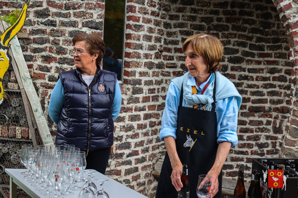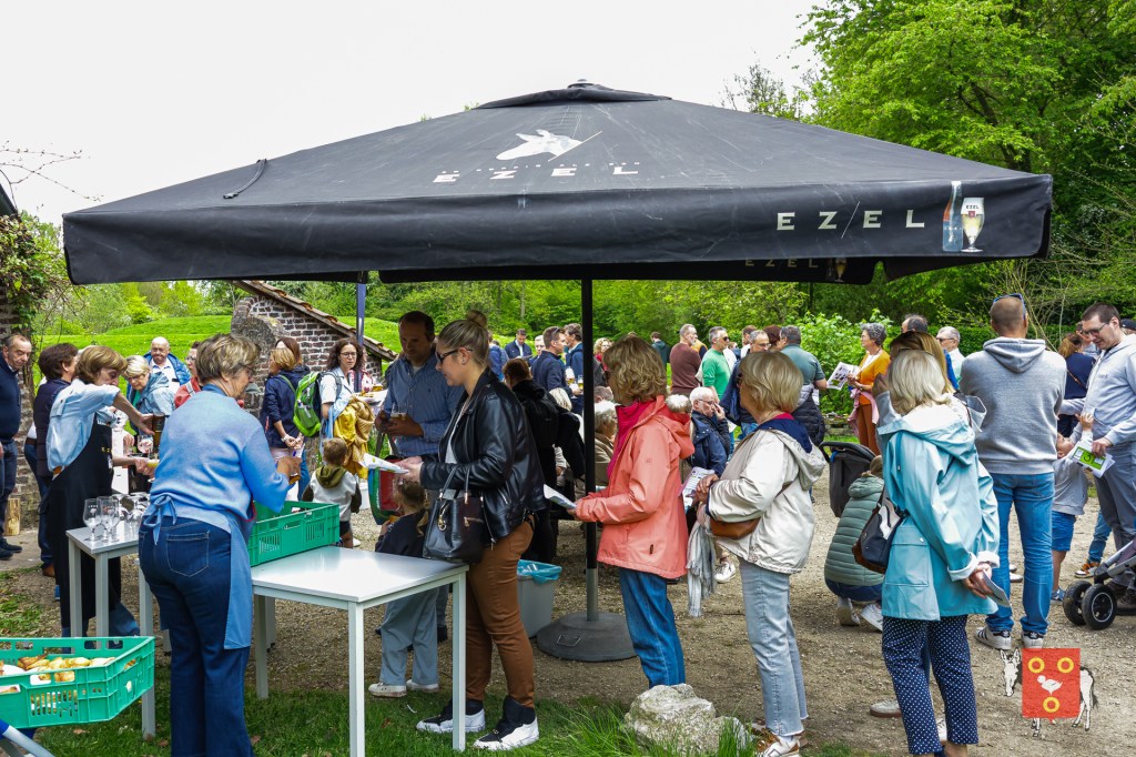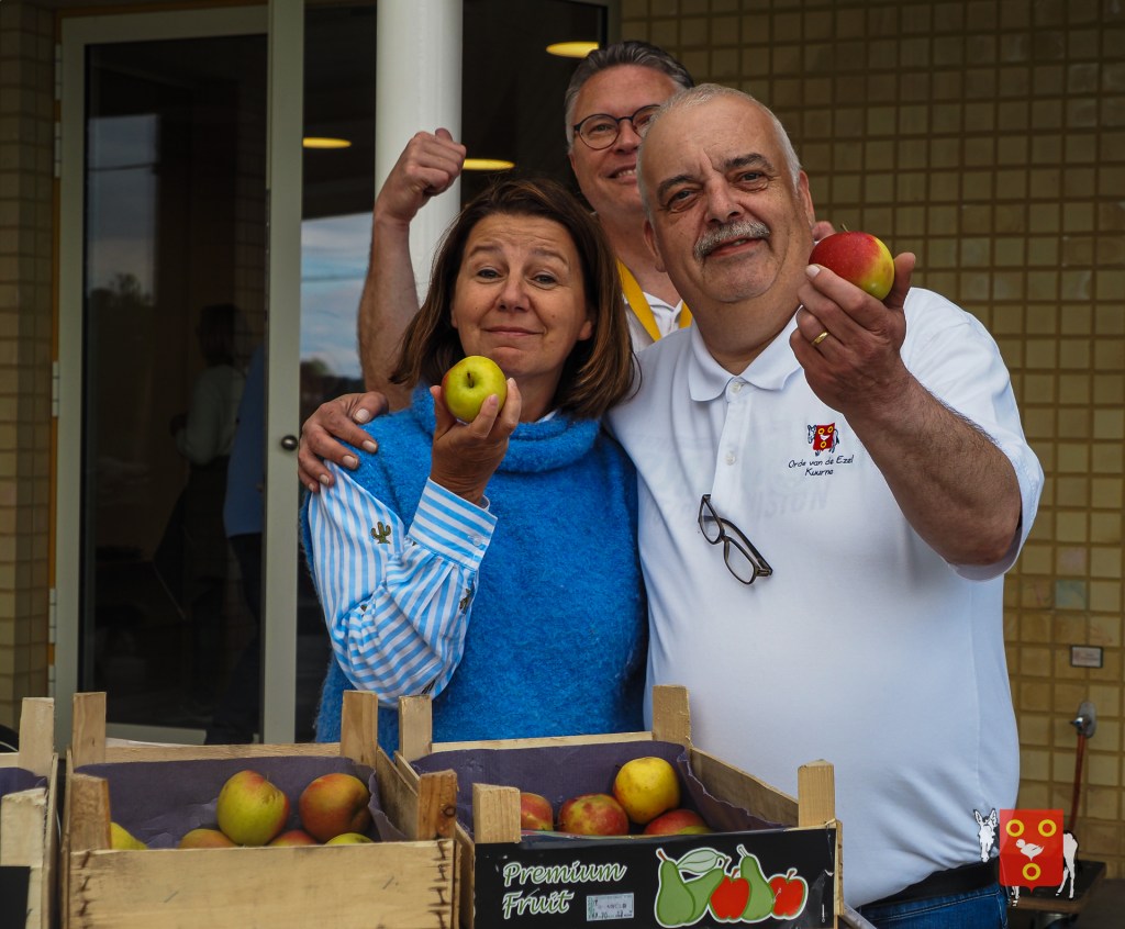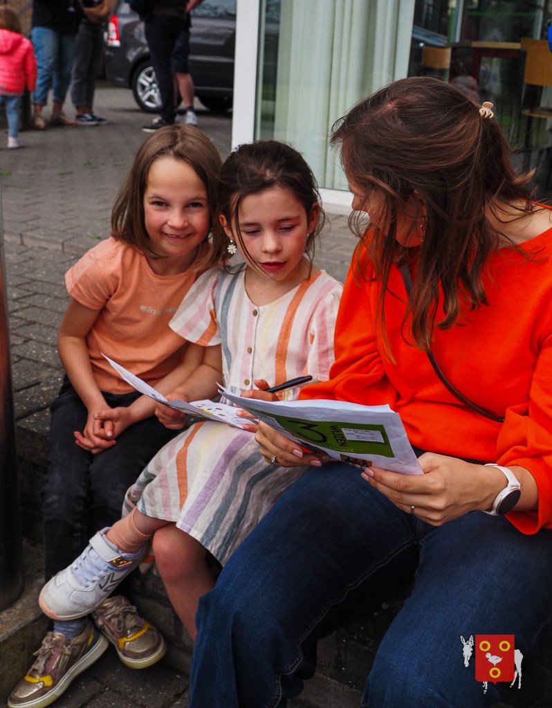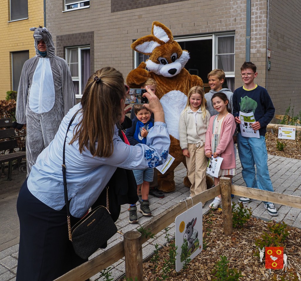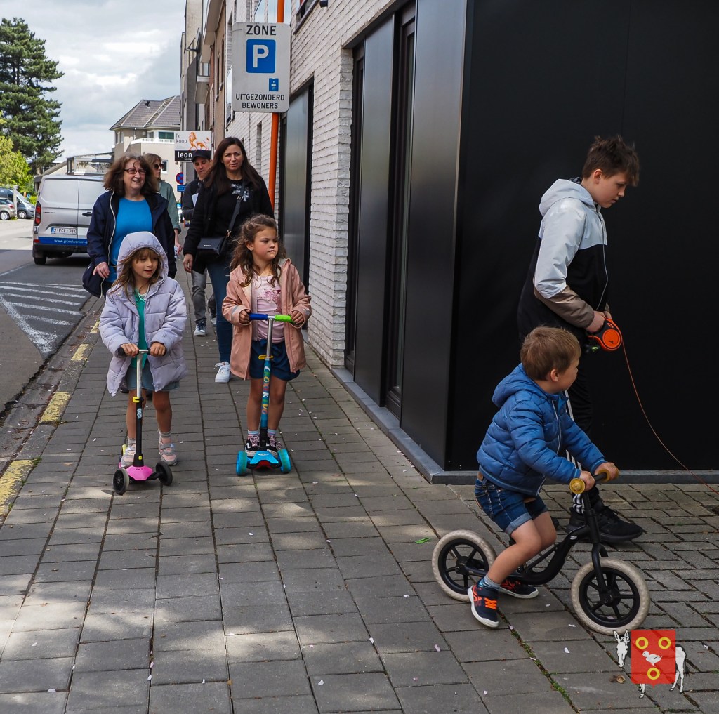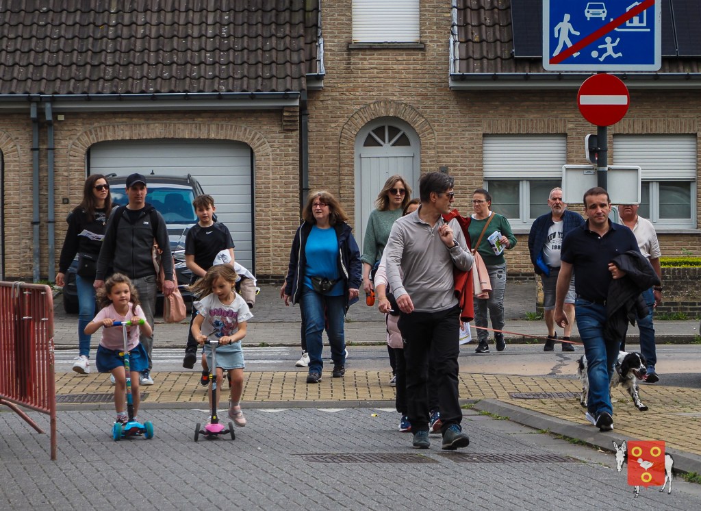 Een overzicht van amuserende en wandelende families met kinderen, honden , vrienden, genieten van een ezeltje, ezelsoor, appel en de 50 bordjes zonder nut. De kinderen tekenden de figuren over van onze wandelende ezel. Zon en regen waren van de partij maar veel wandelaars kozen om vroeg te starten zodat er wat onvoorziene wachttijden waren door de massale deelname. Dank u !