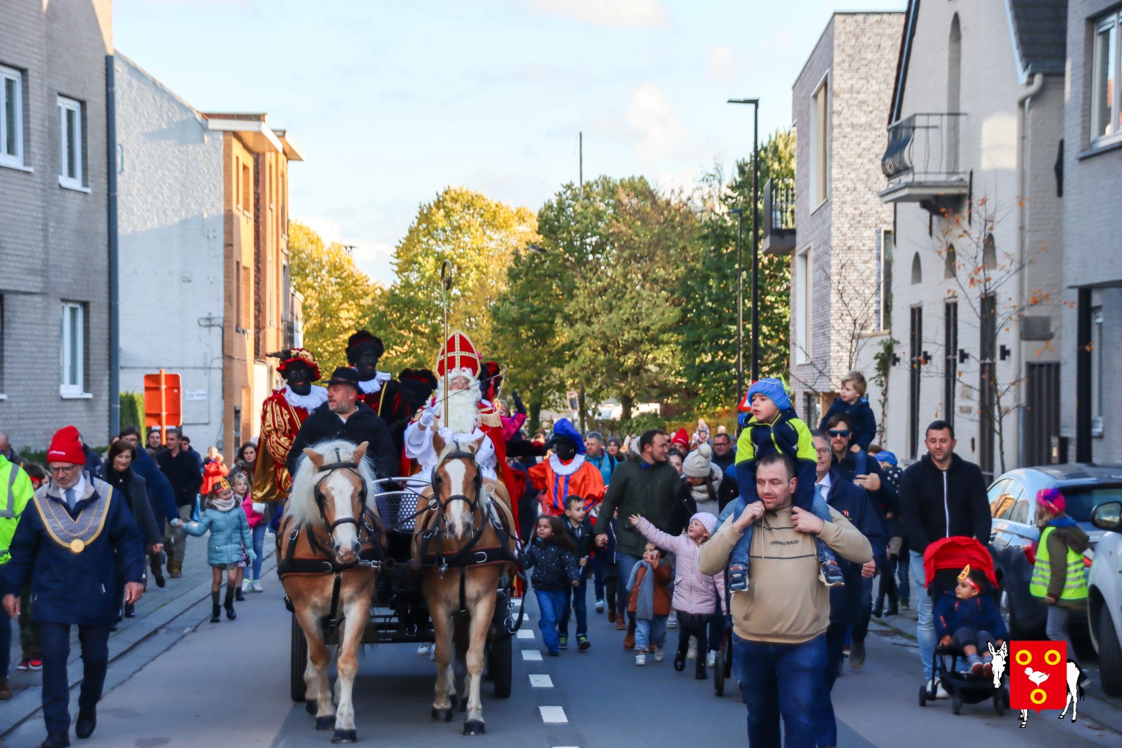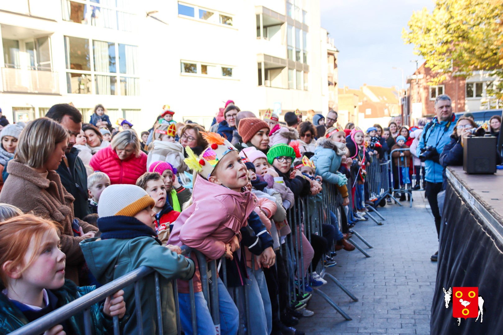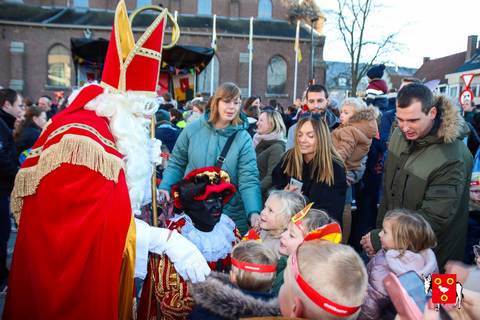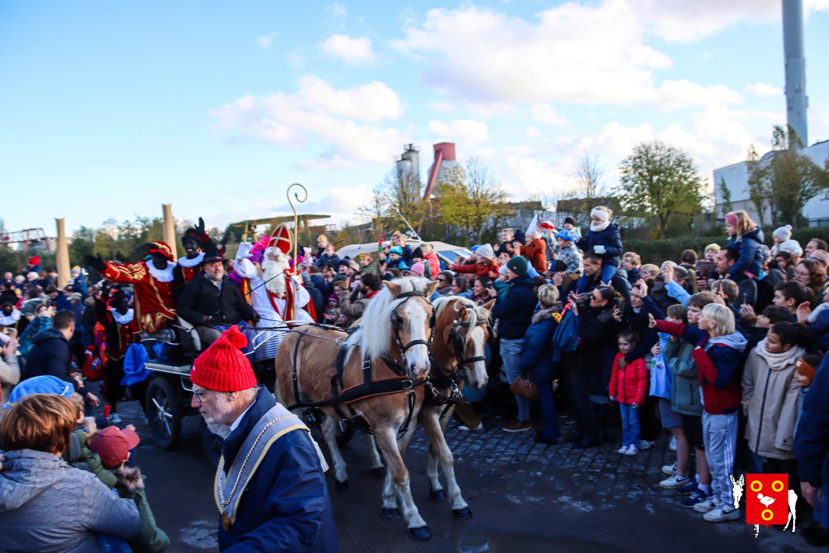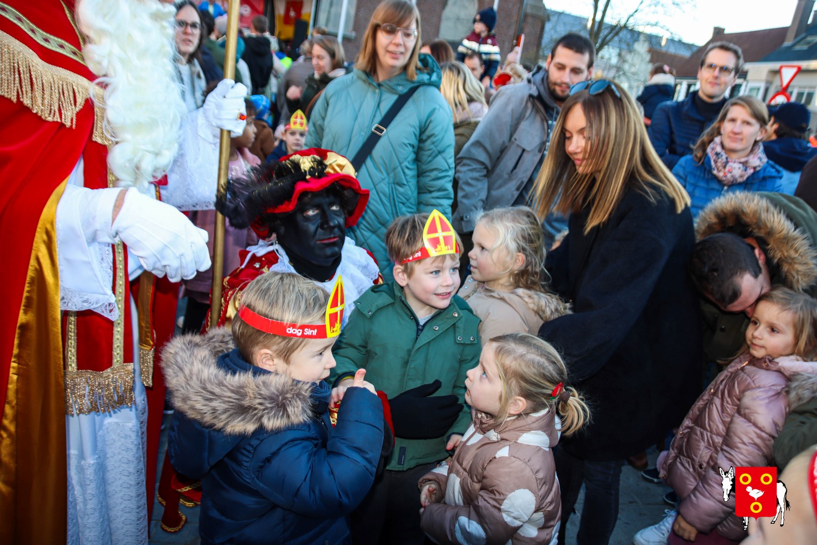 Plan B – overstappen op zijn koets met zijn paarden #redelijkweervandaag en #hetmageensstoppenmetregenen. Zo konden de honderden Kuurnse (en ze kwamen zelfs uit Kortrijk en Harelbeke) met hun ouders, grootouders de Sint en zijn zwarte pieten toch konden ontvangen. Op het marktplein brak het feest los met de ontvangst en Raf Violi die zowel klein als groot, jong en oud deed dansen van plezier.