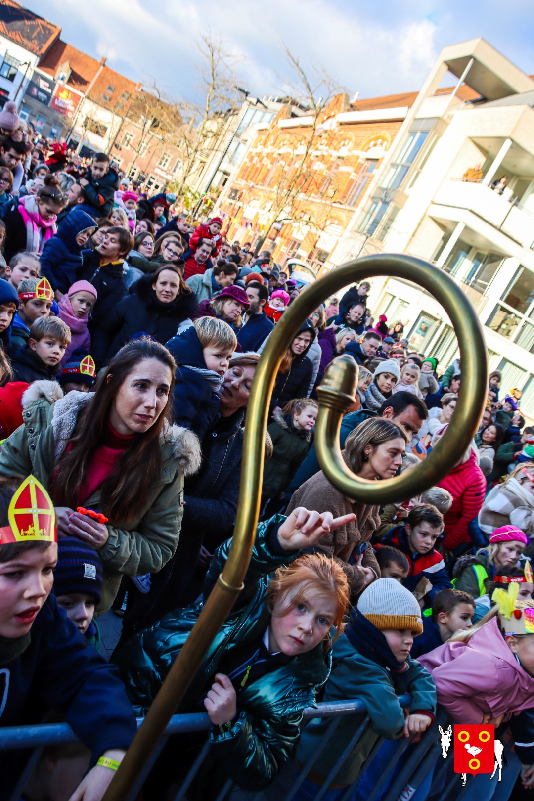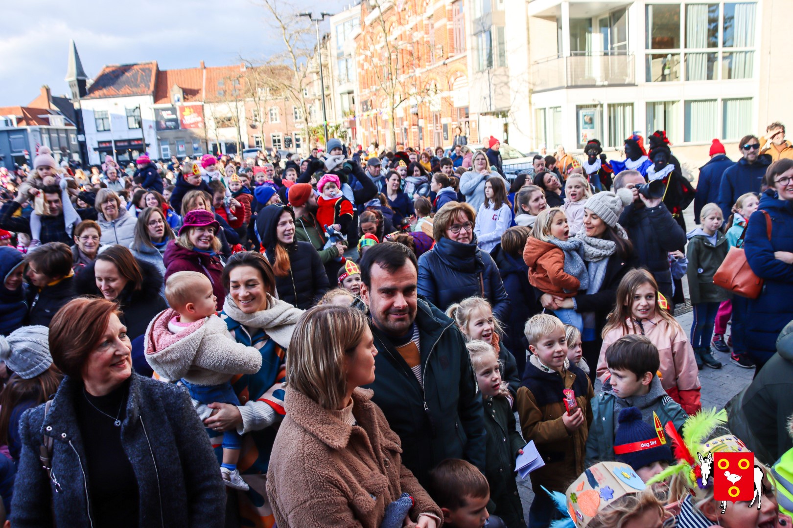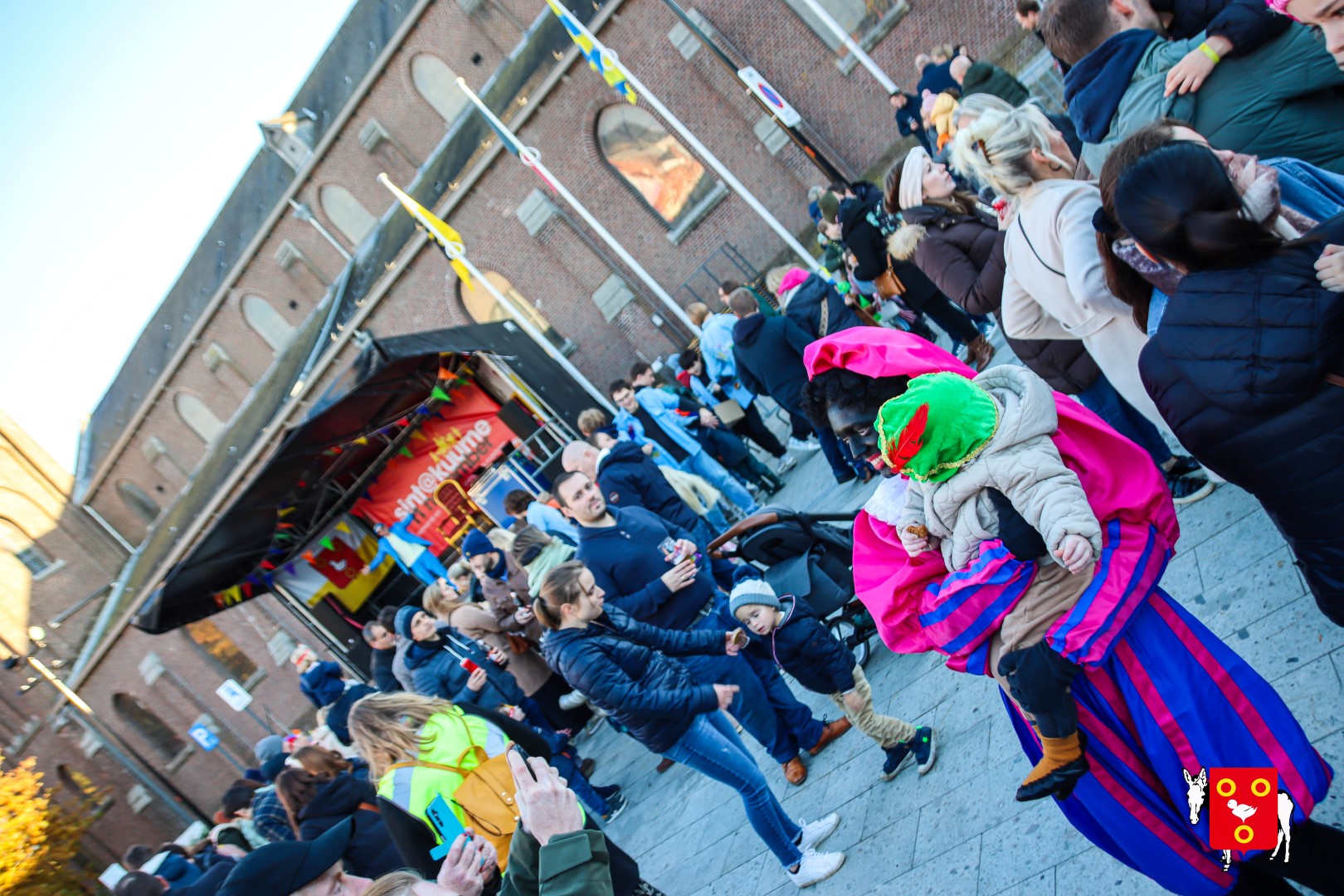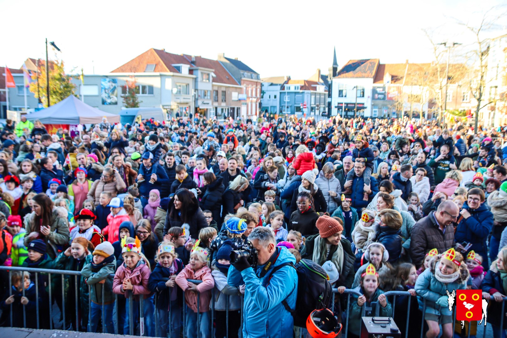 Plan B – overstappen op zijn koets met zijn paarden #redelijkweervandaag en #hetmageensstoppenmetregenen. Zo konden de honderden Kuurnse (en ze kwamen zelfs uit Kortrijk en Harelbeke) met hun ouders, grootouders de Sint en zijn zwarte pieten toch konden ontvangen. Op het marktplein brak het feest los met de ontvangst en Raf Violi die zowel klein als groot, jong en oud deed dansen van plezier.