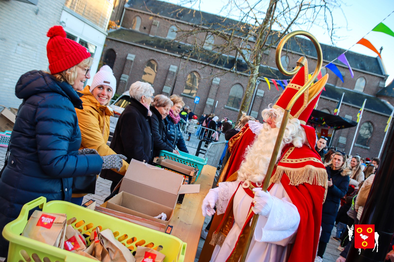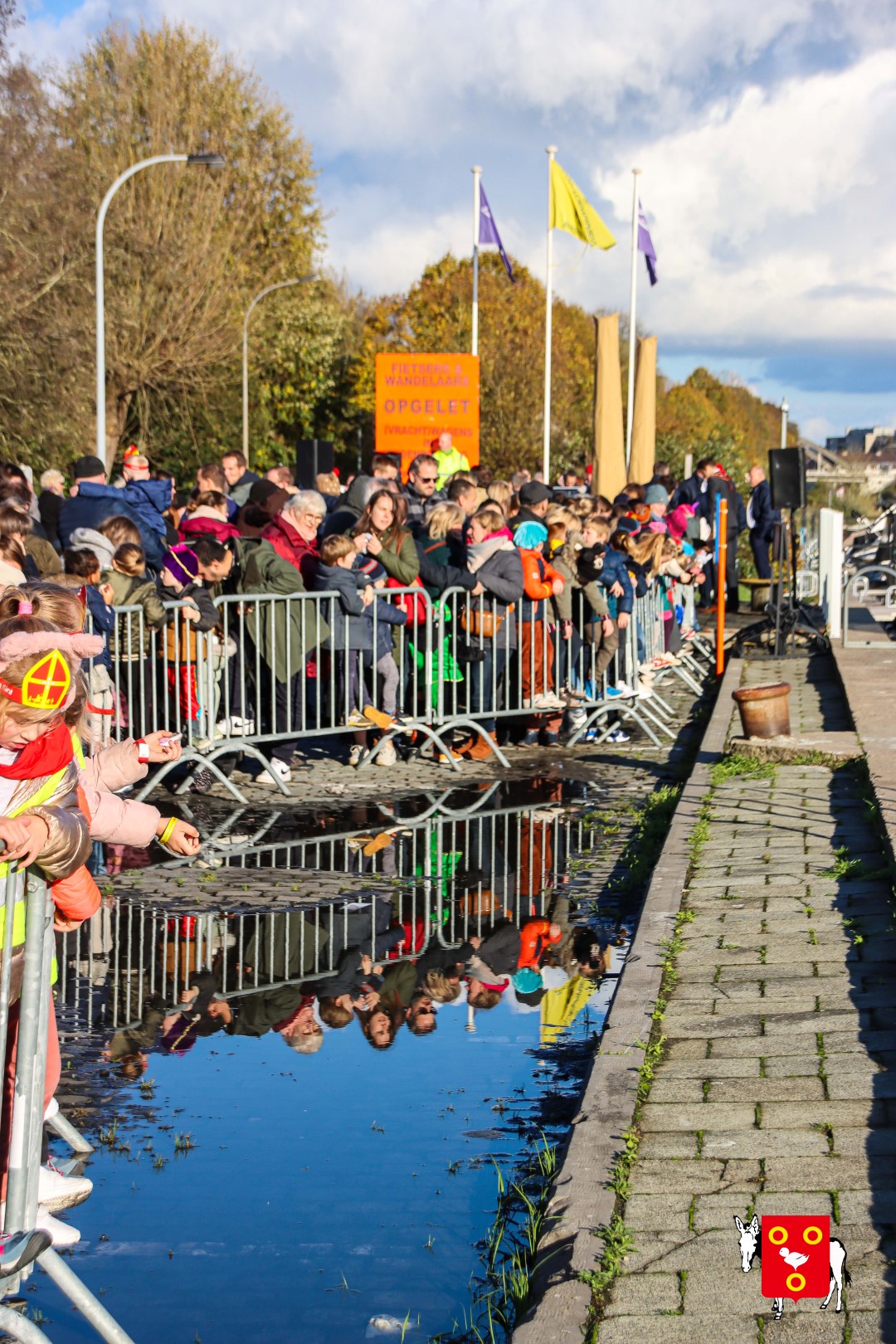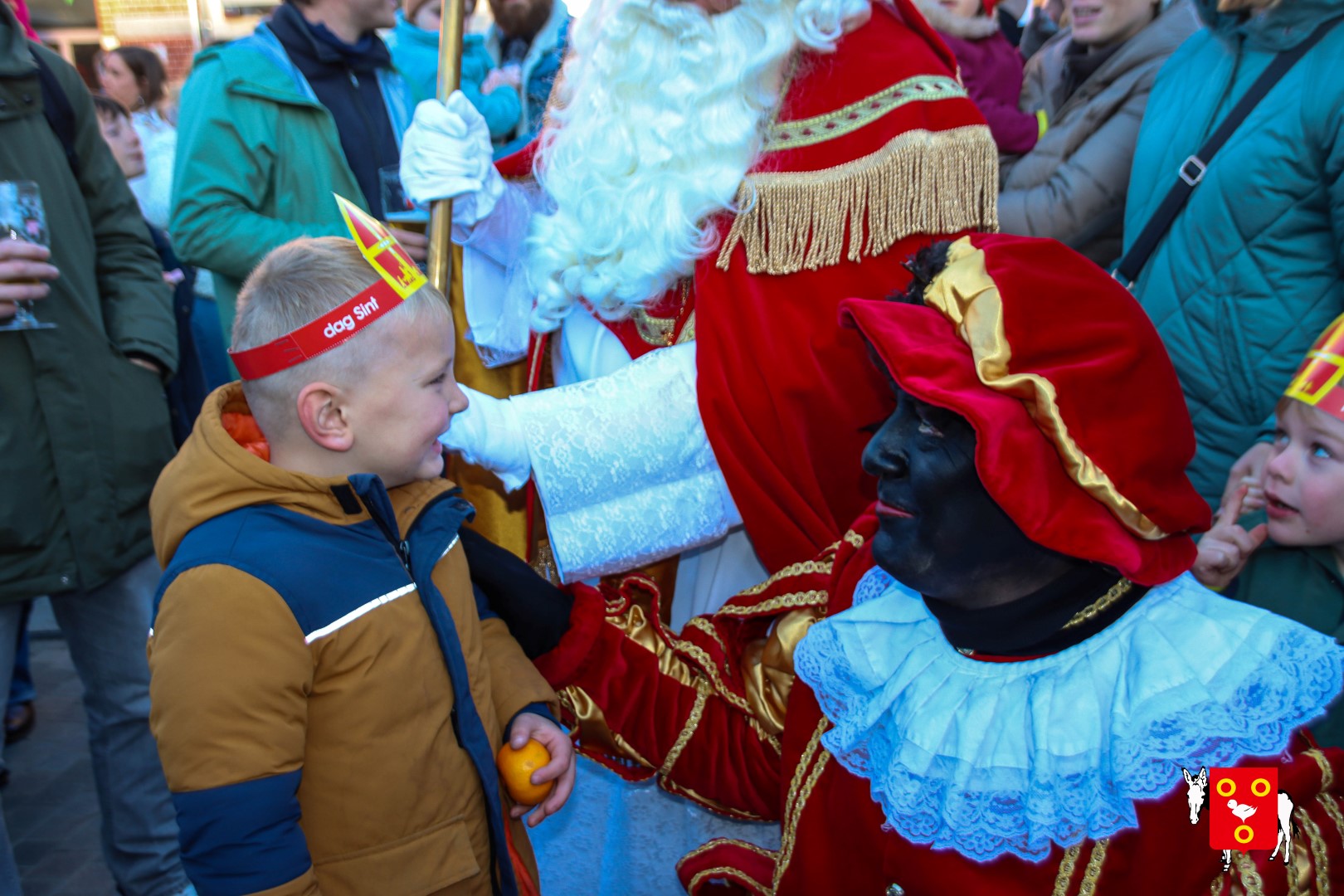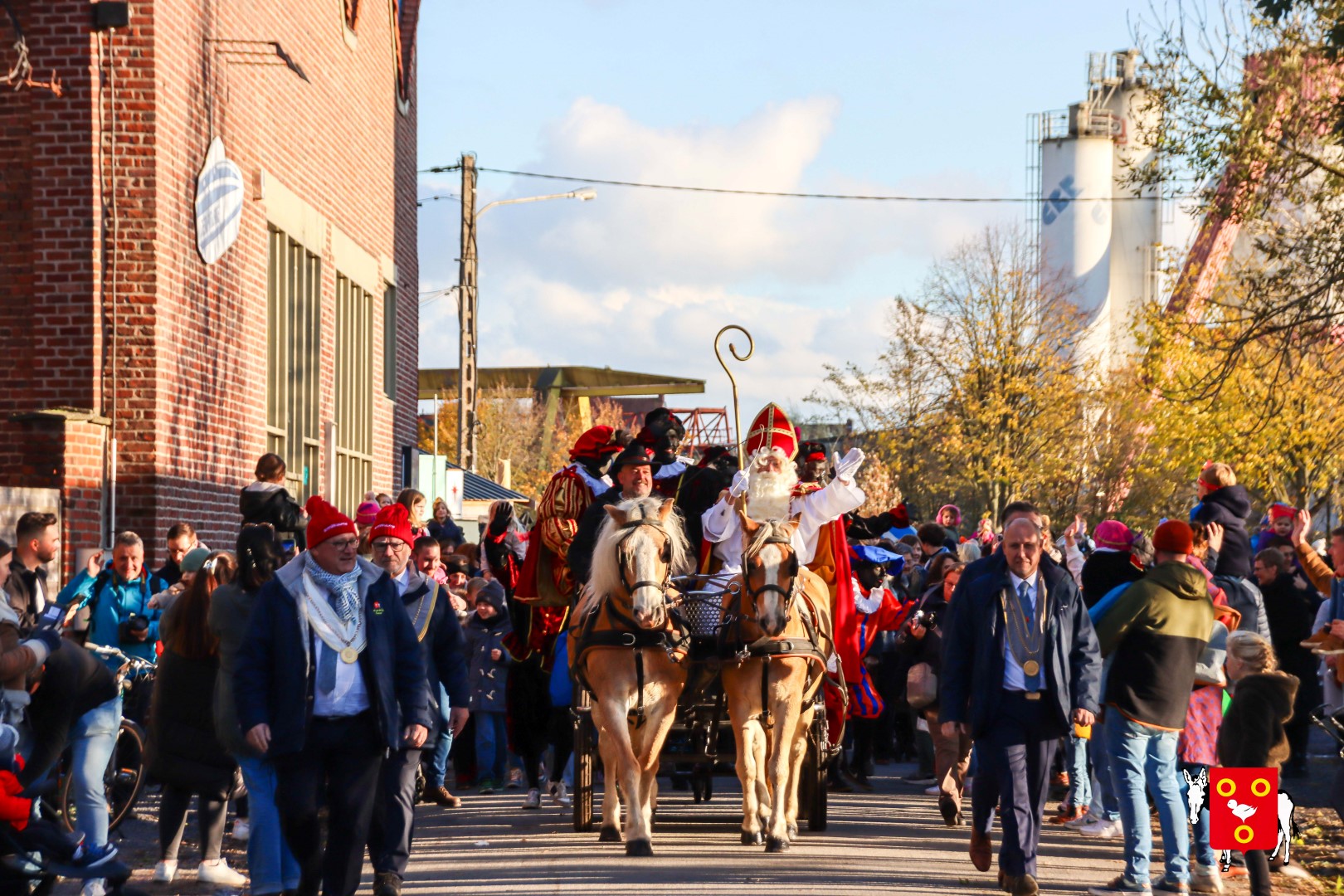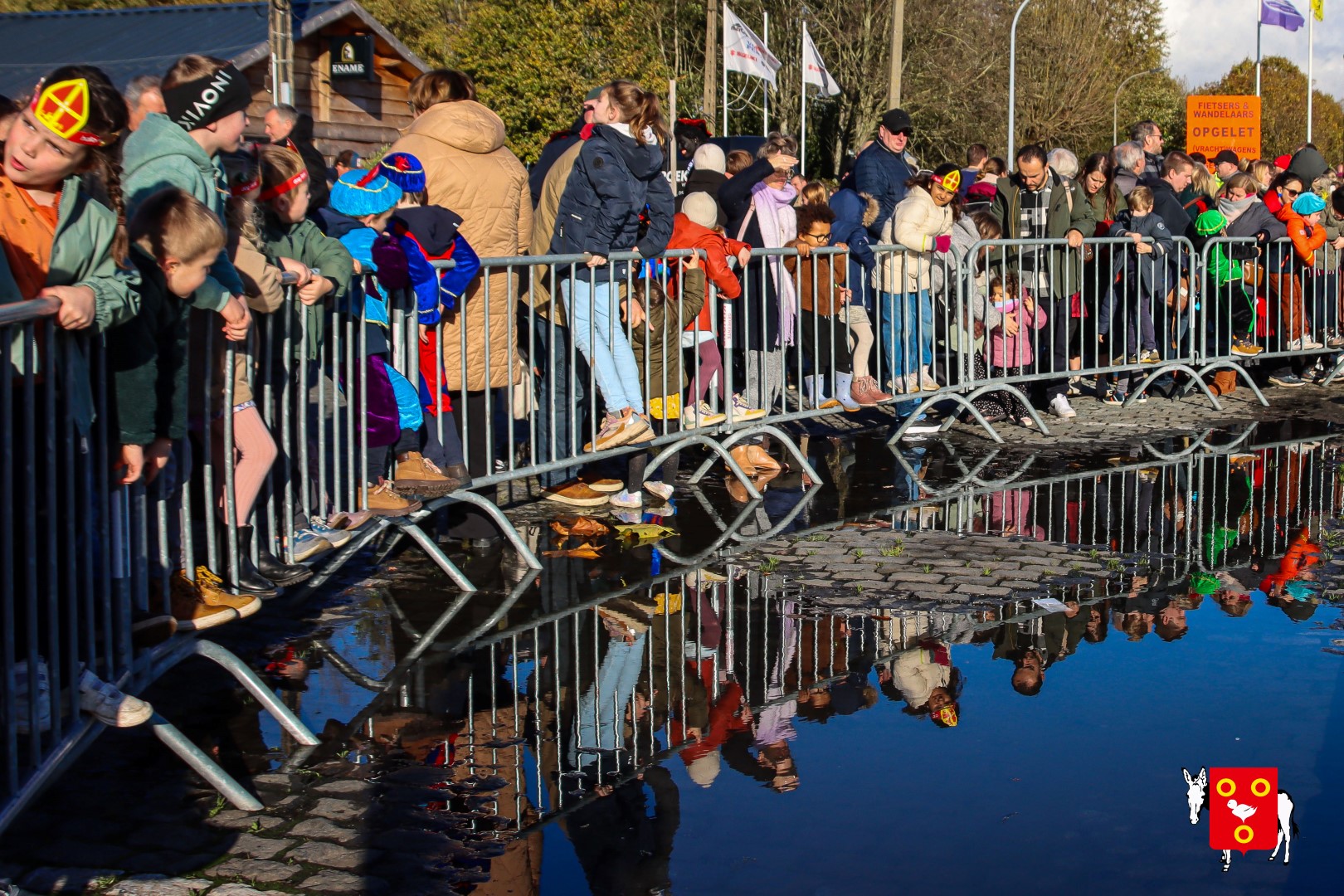 Plan B – overstappen op zijn koets met zijn paarden #redelijkweervandaag en #hetmageensstoppenmetregenen. Zo konden de honderden Kuurnse (en ze kwamen zelfs uit Kortrijk en Harelbeke) met hun ouders, grootouders de Sint en zijn zwarte pieten toch konden ontvangen. Op het marktplein brak het feest los met de ontvangst en Raf Violi die zowel klein als groot, jong en oud deed dansen van plezier.