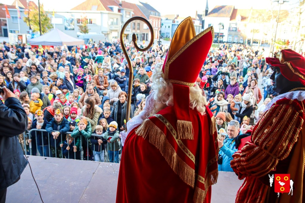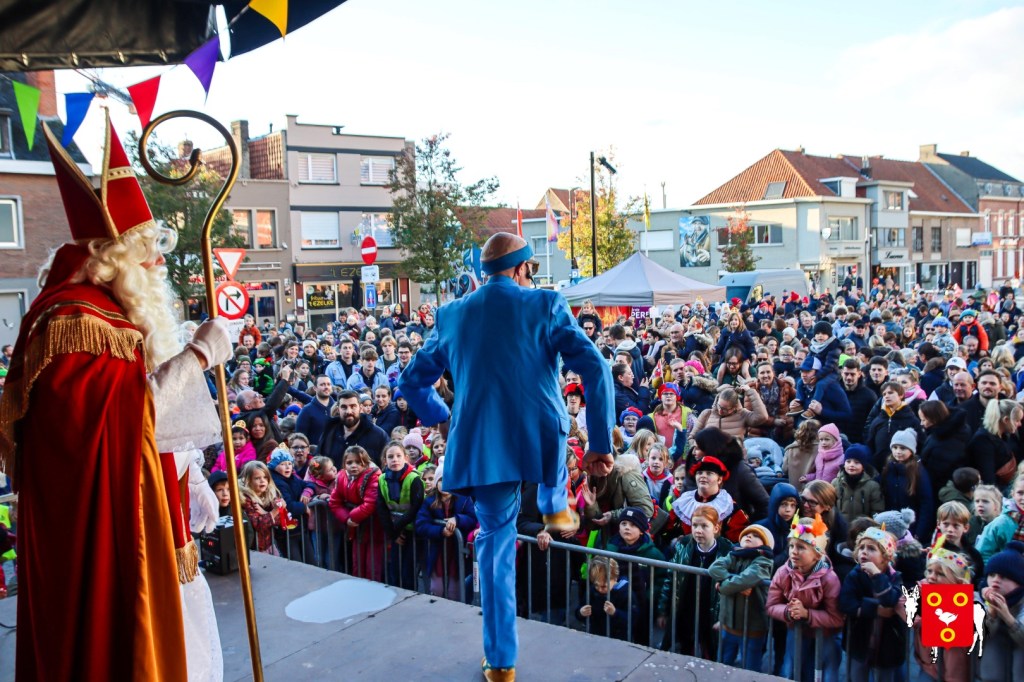 Plan B – overstappen op zijn koets met zijn paarden #redelijkweervandaag en #hetmageensstoppenmetregenen. Zo konden de honderden Kuurnse (en ze kwamen zelfs uit Kortrijk en Harelbeke) met hun ouders, grootouders de Sint en zijn zwarte pieten toch konden ontvangen. Op het marktplein brak het feest los met de ontvangst en Raf Violi die zowel klein als groot, jong en oud deed dansen van plezier.