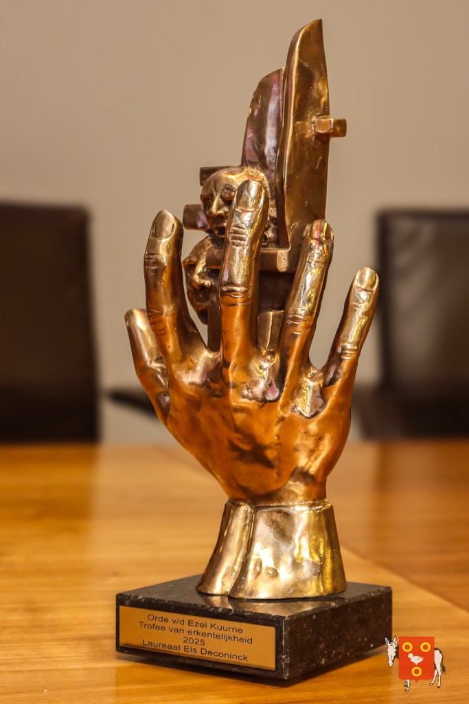 Nadien volgde de uitreiking van de erkentelijkheidstrofee ‘De Helpende Hand 2025’ in het gemeentehuis. Els die samen met Krist al jaren pleegouders ondanks een fysieke beperking. 38 pleegkinderen hebben zij met zorg en liefde opgevangen. Daarnaast zetten ze zich belangeloos in andere verenigingen voor in maar liever op de achtergrond dan op de voorgrond. Maandag stonden ze eens in de voorgrond. En terecht. Kuurnenaars om fier op te zijn.